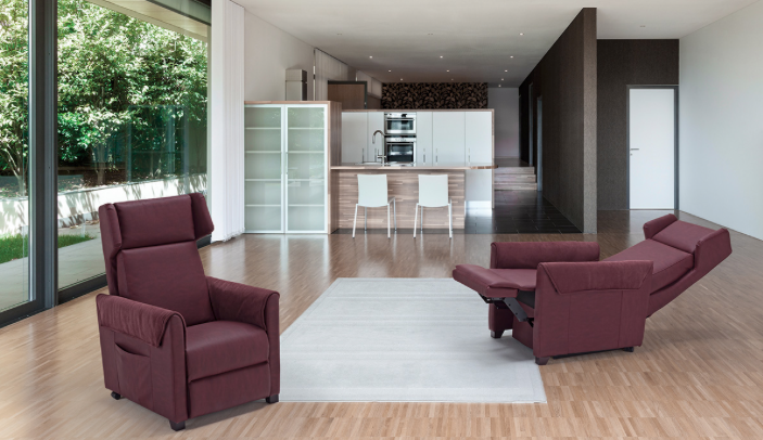 La poltrona relax Roma con movimento a 2 motori e Lift-Alzapersona permette di assumere posizioni differenti a seconda delle necessità dell’utilizzatore. Il movimento a 2 motori consente di assumere la posizione Total Relax (letto) con apertura completa di schienale e pediera, oppure la posizione TV/Lettura mantenendo lo schienale perpendicolare alla seduta e sollevando a piacimento la pediera per il massimo comfort. Il movimento Lift-Alzapersona, facilita la messa in piedi, ed è particolarmente utile in tutte quelle situazioni in cui chi usa la poltrona ha difficoltà ad assumere la posizione eretta dopo essere stato seduto.