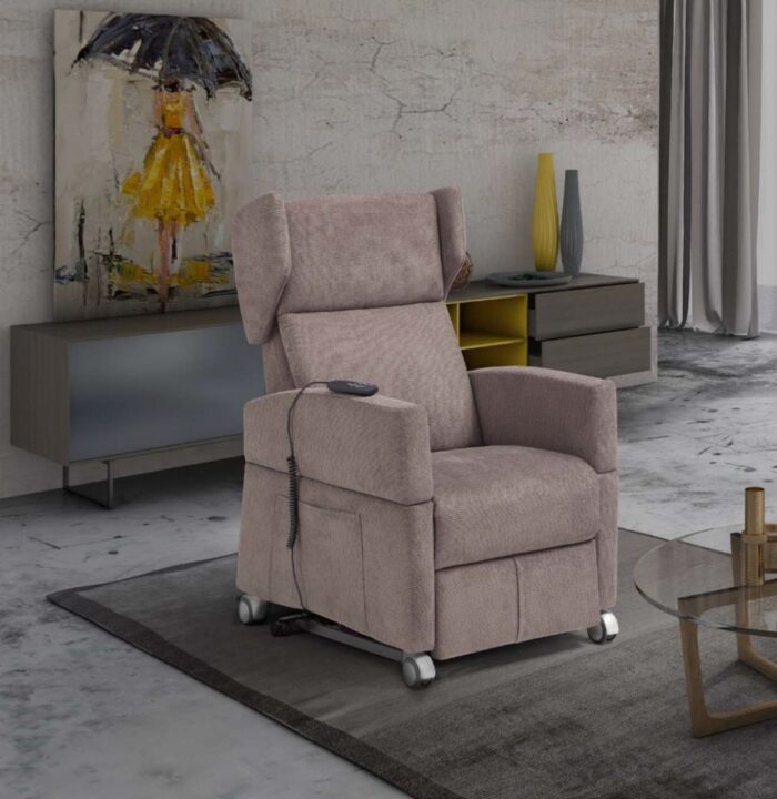 - 2 motori: la poltrona consente di regolare tramite l’apposito telecomando l’inclinazione di schienale e pediera, con movimenti indipendenti e separati, per personalizzare al massimo la posizione di relax. Il movimento separato consente di sollevare solo la pediera, mantenendo lo schienale eretto, e di assumere così la posizione TV/Lettura. Continuando a tenere premuto il pulsante che chiude la pediera si attiva il meccanismo alzapersona, che aiuta nella messa in piedi.