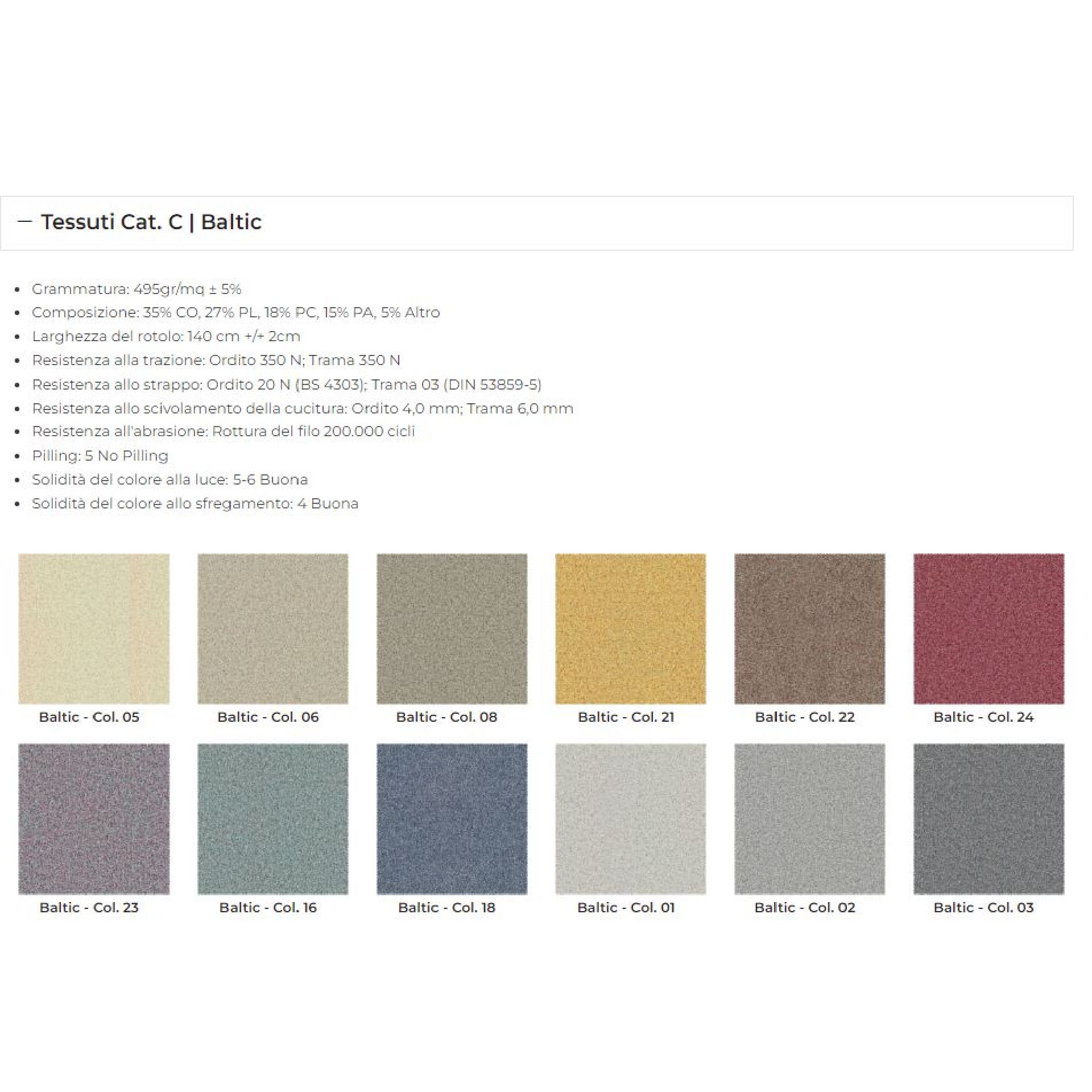 Misure: Larghezza totale 85 cm, Larghezza Seduta 52 cm, Profondità 93 cm, Massima Distensione 169 cm, Altezza Schienale 111 cm, Altezza Seduta 50 cm.