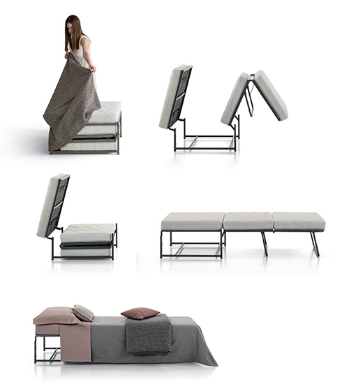 un complemento d’arredo che si trasforma in un vero e proprio letto singolo da mettere ovunque.