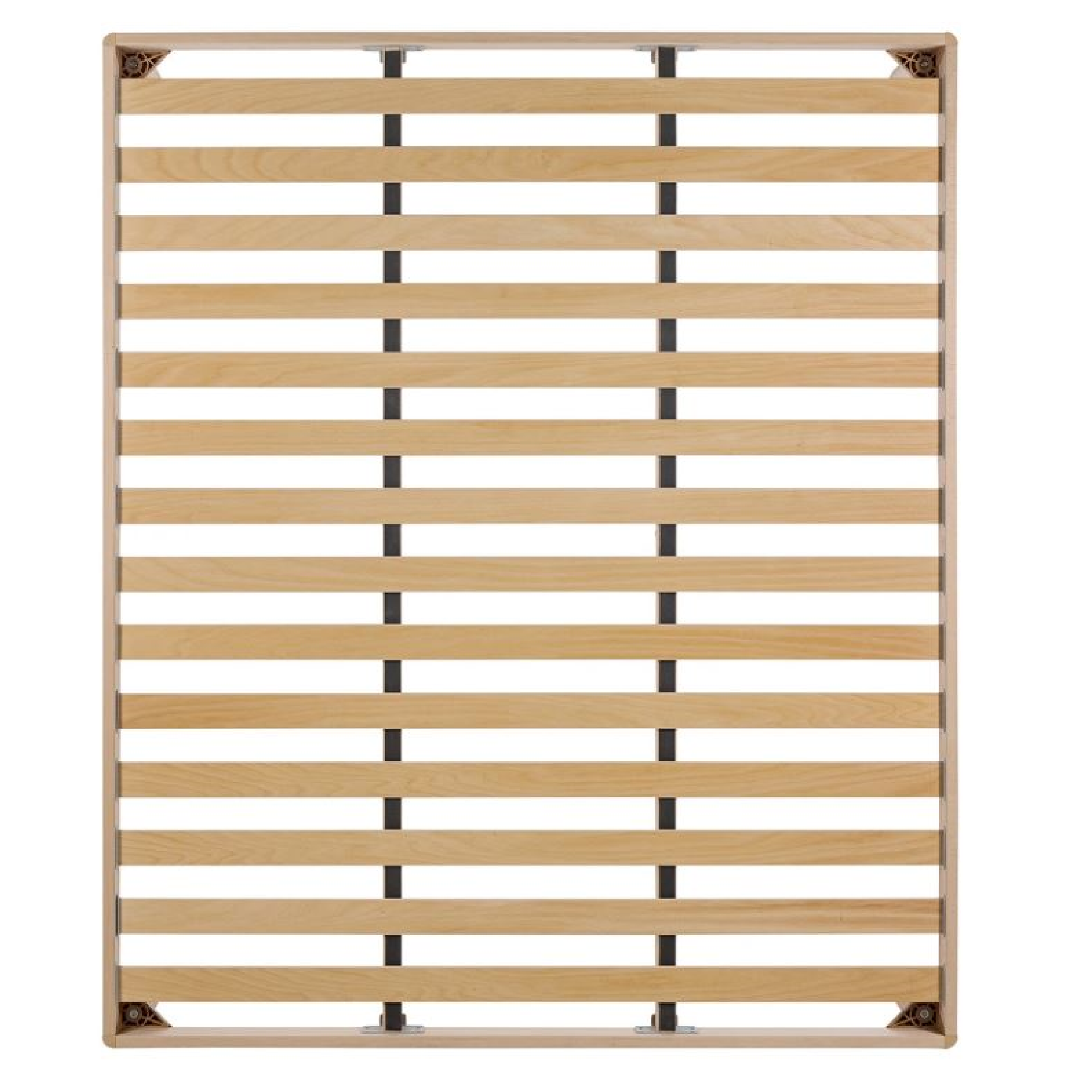 Rete a doghe in legno con doppio traverso, che fornisce un’altissima resistenza al peso.