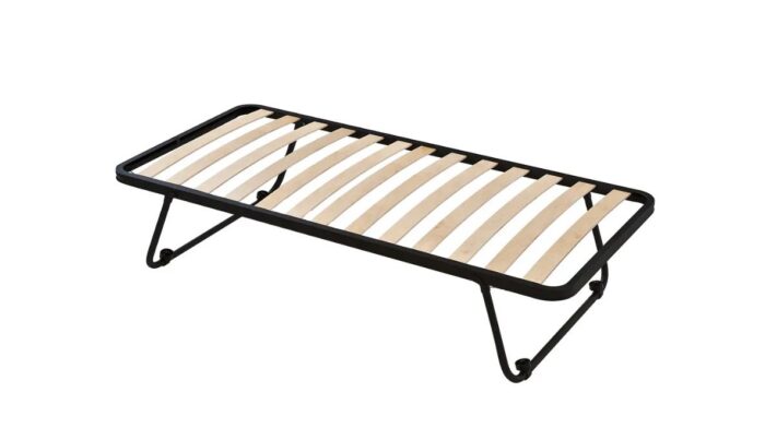rete sotto-letto richiudibile grazie al piede pieghevole con ruote e molle di richiamo.