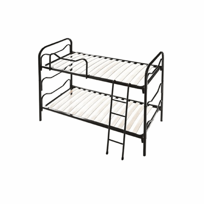 Letto a castello in tubo tondo, con spondina e scaletta.