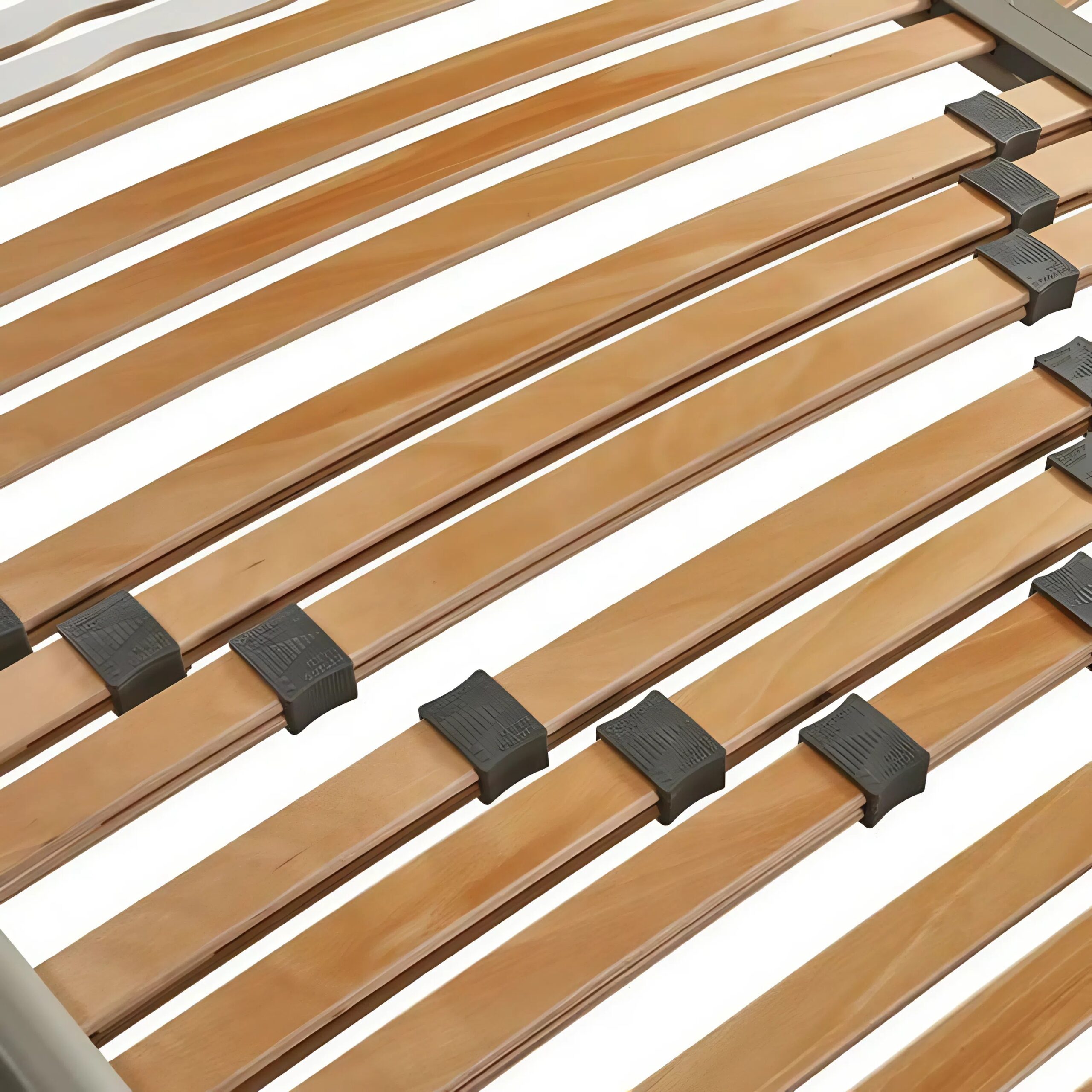 La versione matrimoniale presenta doppia culla, ciò significa che le doghe sono le stesse della versione singola, e sono inserite da telaio laterale a un traverso centrale. In questo modo ognuno fa pressione sulle sole doghe della sua parte di letto, quindi i movimenti notturni di chi ci dorme accanto non influenzeranno il nostro riposo.