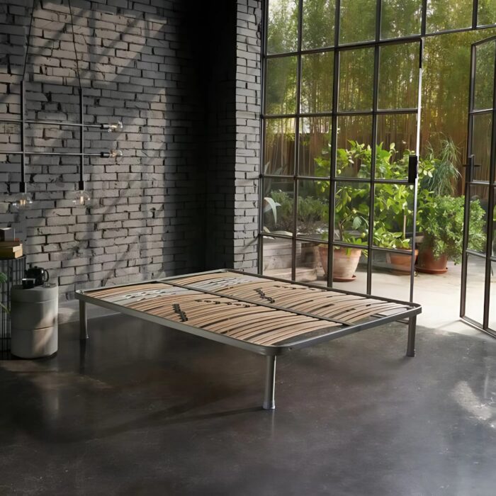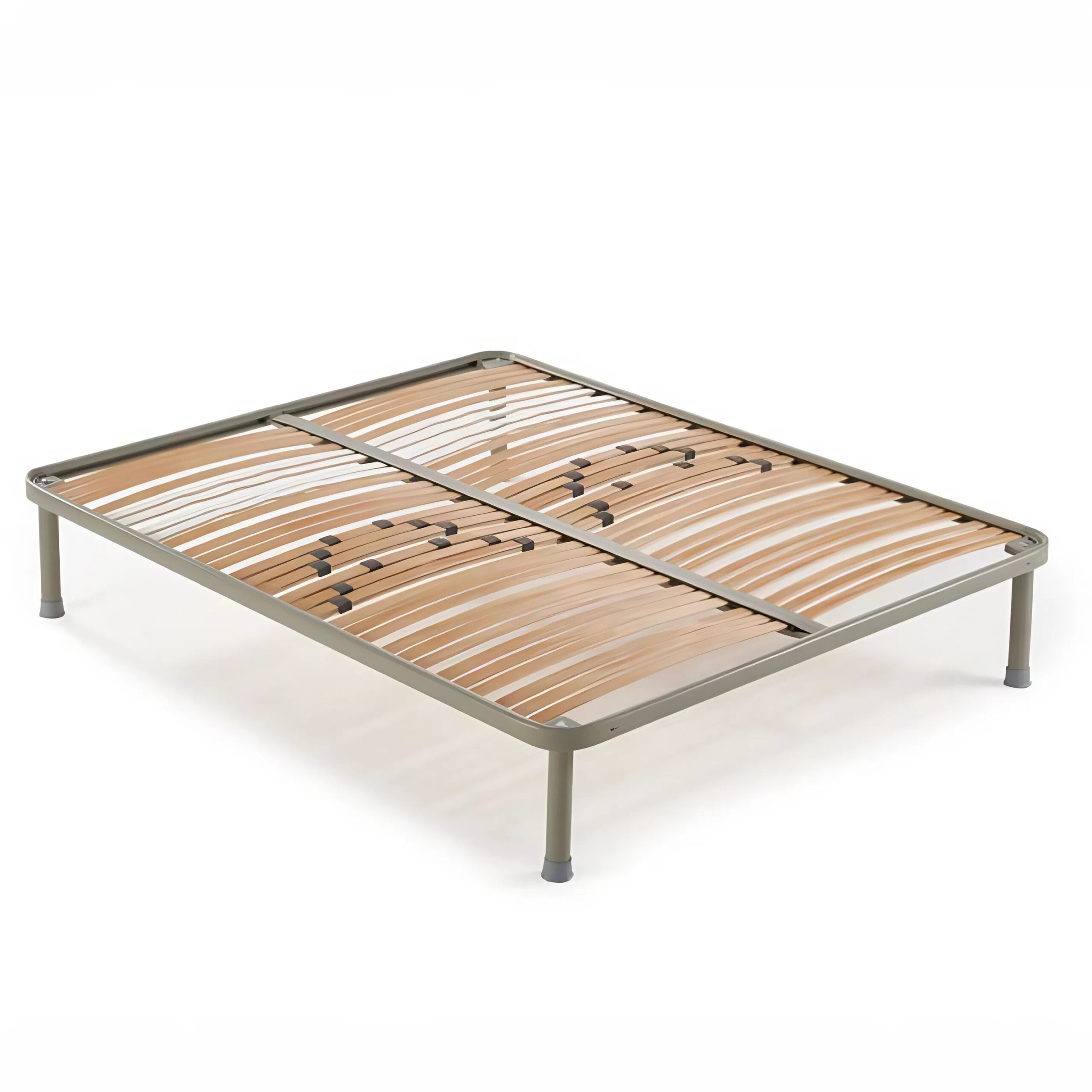 La rete Doga Più 68 Dorelan versione fissa, è costituita da una struttura in metallo da 46*35 mm. Il piano letto è composto da 14 doghe da 38 mm.
