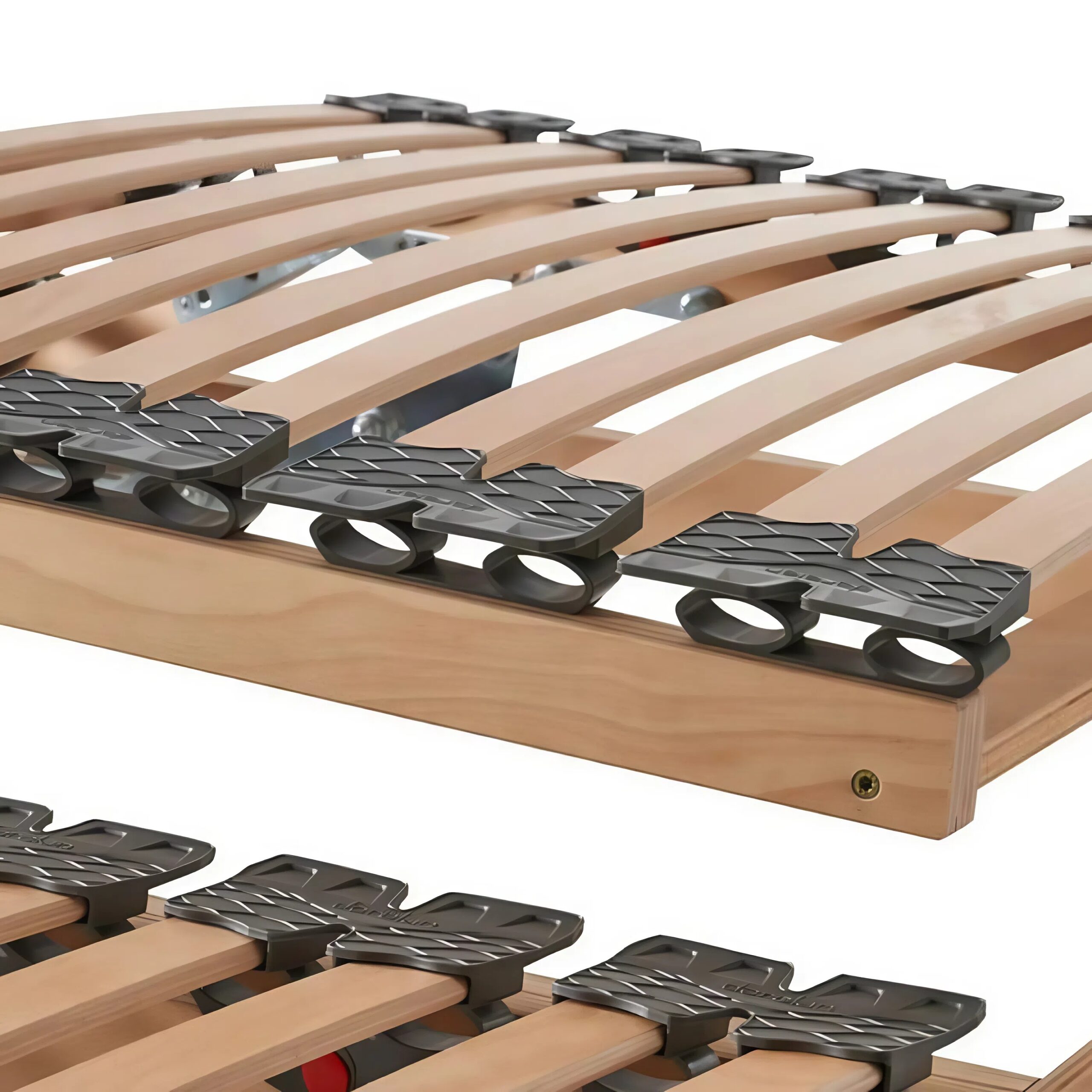 Il piano si compone di 28 doghe in multistrato di faggio con regolatori di rigidità nella zona lombare. I regolatori di rigidità consentono di personalizzare il sostegno fornito dalla rete nella parte centrale, che è la zona di maggior carico. Le doghe nella zona spalle presentano delle asole che le rendono più flessibili, per garantire maggiore accoglienza.