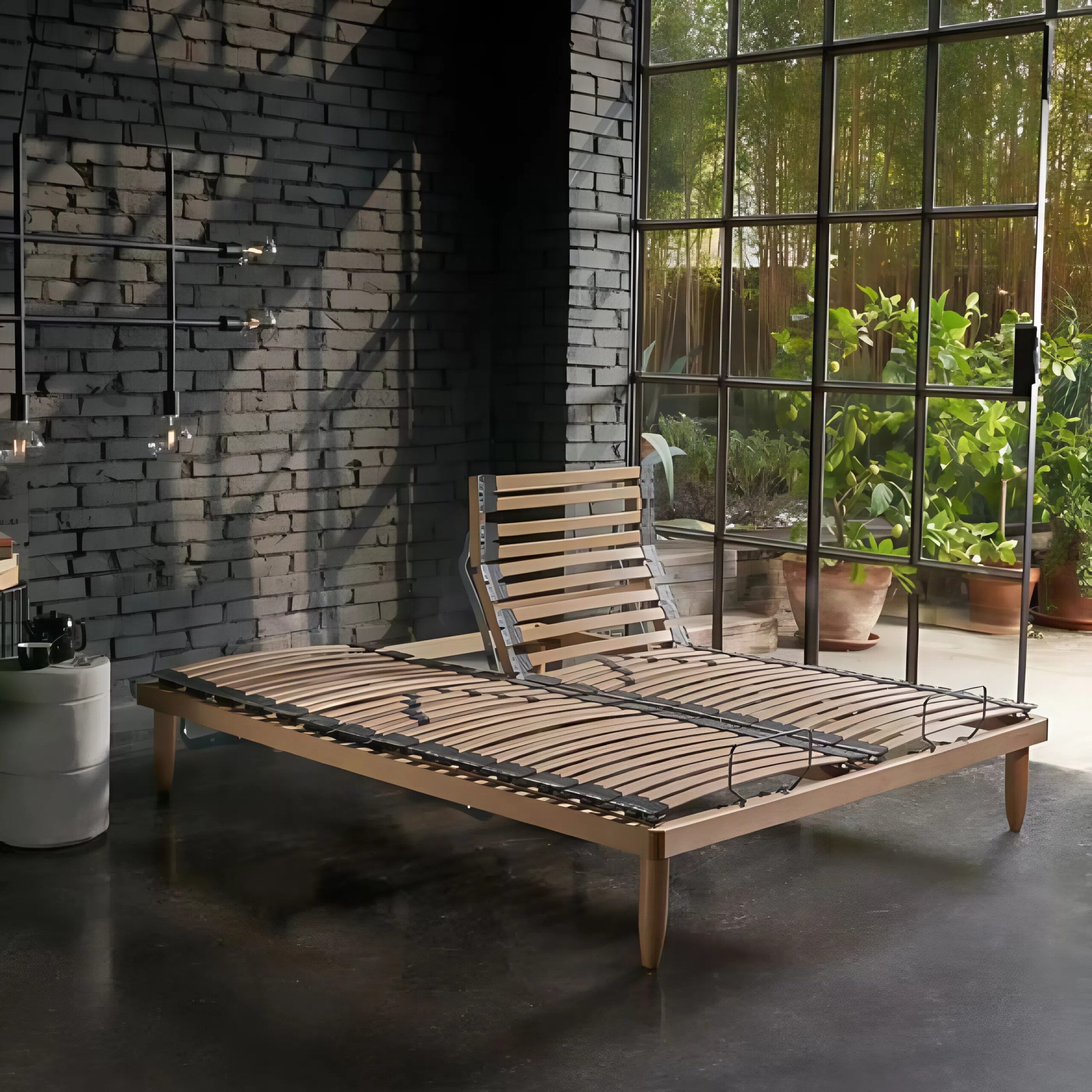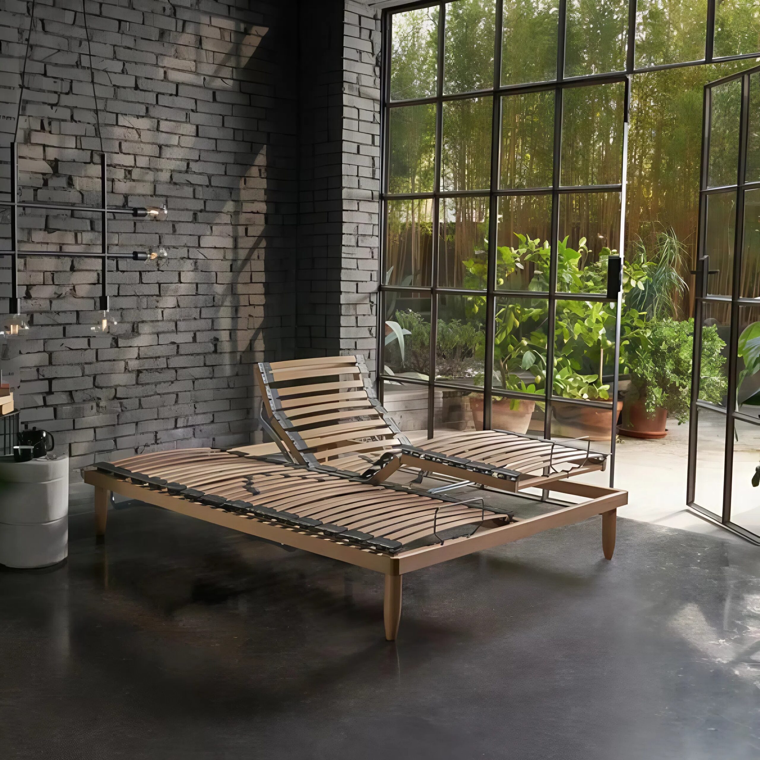 La rete letto Natural 38 Motorizzata è dotata di speciali innesti a balancelle e di regolatori di rigidità scorrevoli nella zona lombare, oltre che di movimento a motore alzatesta/alzagambe per il massimo comfort. La stabilità delle reti è garantita dall’esclusivo sistema di aggangio angolare che unisce il telaio senza l’impiego di viti assicurando stabilità e robustezza.