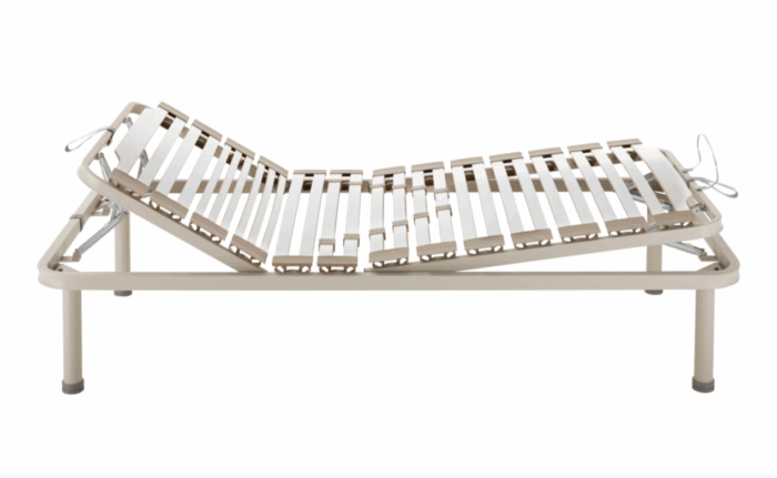 Rete Super Flexi Dorsal è il nuovo supporto anatomico flessibile e bilanciato a zone di accoglimento differenziato. Studiata per esaltare ed assecondare contemporaneamente le caratteristiche del materasso. Super Flexi è la rete Dorsal progettata per rispondere alle esigenze di un sostegno moderato, oltretutto con prestazioni che durano nel tempo. Testata certificata insieme a IGR istituto tedesco di ricerca per la salute, Super Flexi è il supporto anatomico che si adatta in modo efficace alle naturali curvature del corpo. Le doghe in faggio multistrato FSC altamente flessibili e resistenti alle sollecitazioni, rendono Super Flexi una base di appoggio e di areazione ottimale anche per qualsiasi tipologia di materasso. L’invaso che accoglie le doghe è brevettato, calibrato, silenzioso ed è capace di resistere a notevoli sollecitazioni e altrettanto agli sbalzi di temperatura. Supporto anatomico in acciaio 40×30 mm. Verniciatura Dorsal a polveri, atossica e antigraffio. 26 Doghe in faggio multistrato 38×8 mm. Adattamento anatomico a 7 zone differenziate. Cursori regolabili inoltre permettono di variare la risposta alle sollecitazioni del peso, permettendo di regolarea piacere la minore o la maggiore rigidità nella zona lombare del sistema anatomico. Per Super Flexi Dorsal ha ulteriormente studiato speciali sagomature delle doghe per l’accoglimento ottimale della zona spalle e polpacci. La verniciatura di Super Flexi è curata all’interno dell’azienda, personalizzata in un caldo colore sablè è atossica e antigraffio. Comfort morbido.