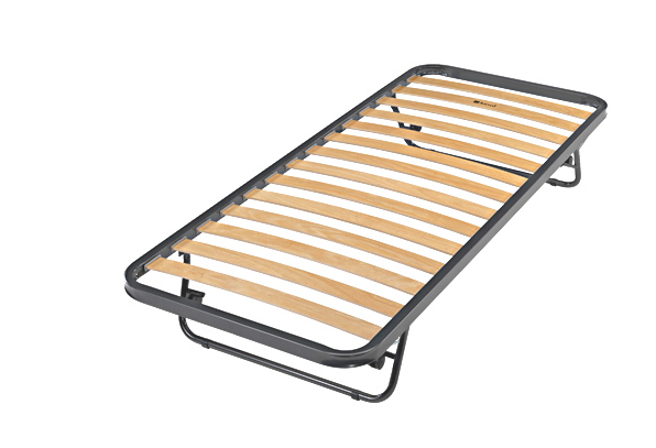 Il telaio metallico monta 14 doghe in faggio ecosostenibile e certificato. Doghe 63*8 cm.