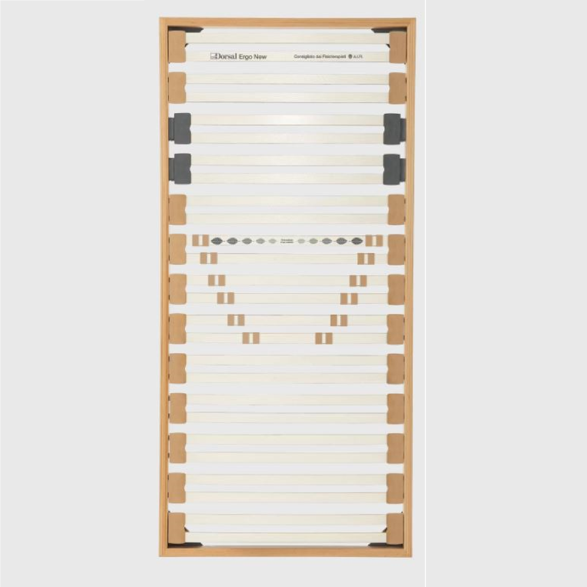 La rete Ergo è realizzata con le nuove Doghe Dorsal a 7 strati  altamente performanti. La pellicola che che le ricopre ha funzione protettiva antiumidità e la struttura a piccole depressioni crea benefici passaggi d’aria tra la doga e il materasso, per una costante aerazione di tutto il sistema letto.