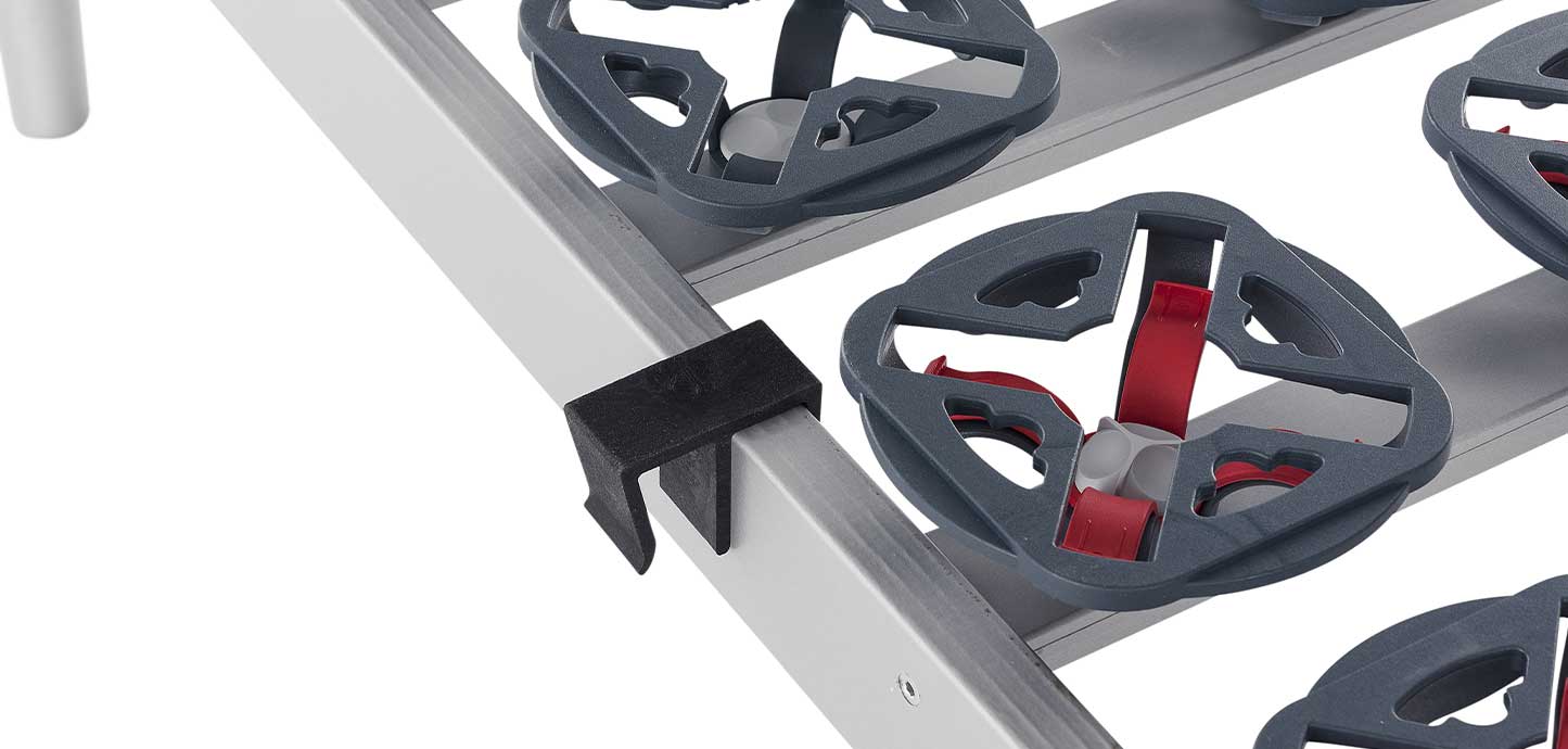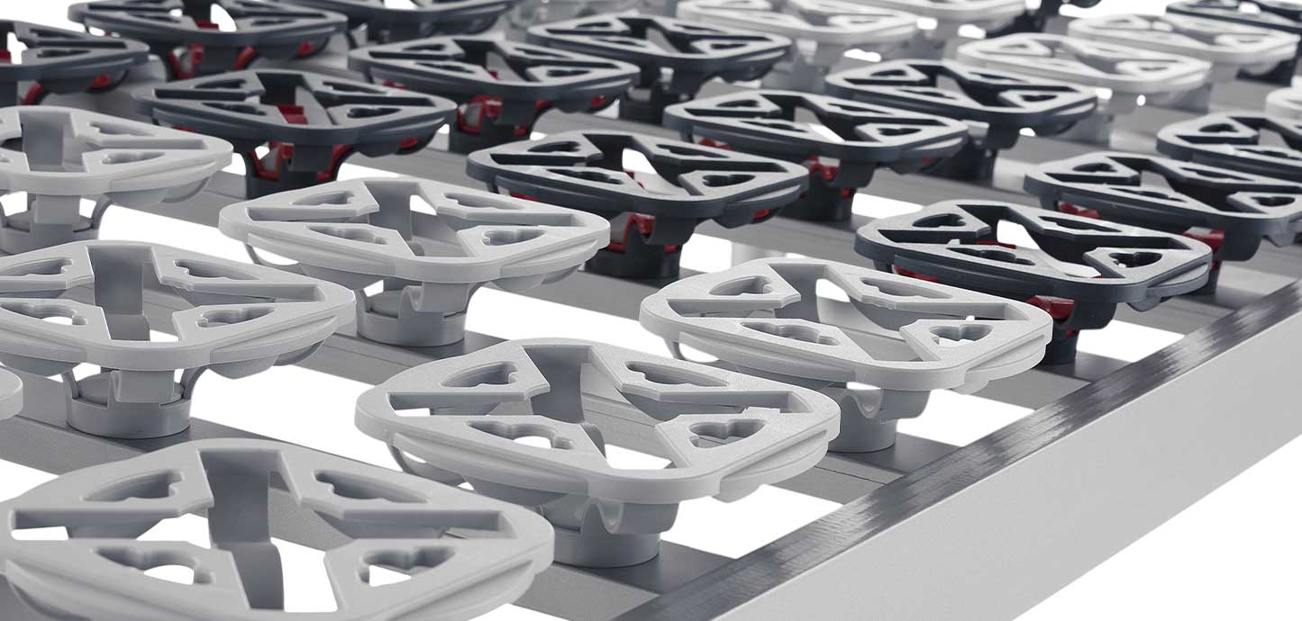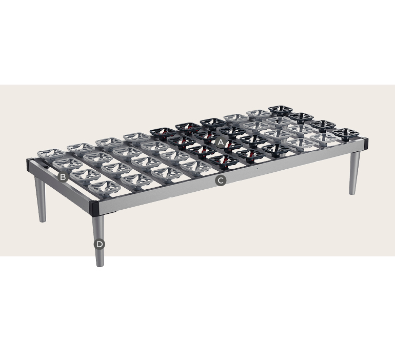 Le piastre distribuiscono il peso uniformemente sull’intera superficie di riposo e gli speciali ammortizzatori permettono di accogliere il peso corporeo in base ai punti di pressione. I regolatori di rigidità presenti sulle piastre consentendo di regolare la rigidità? della rete in maniera personalizzata in base alle singole preferenze.