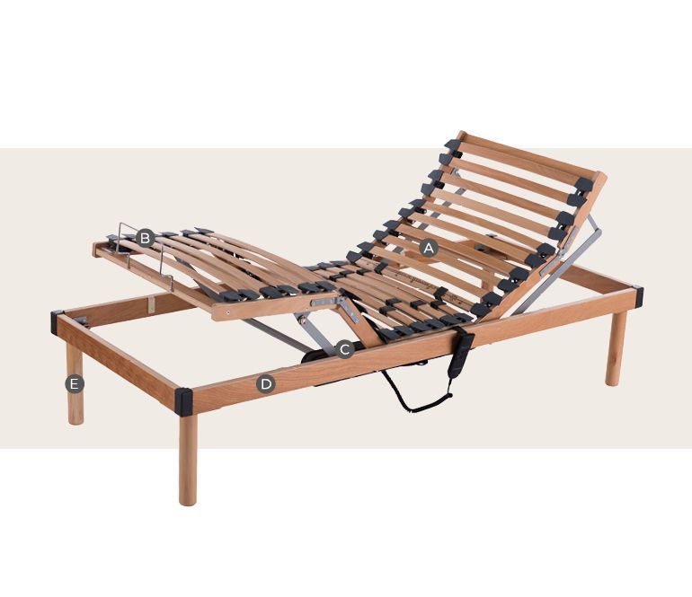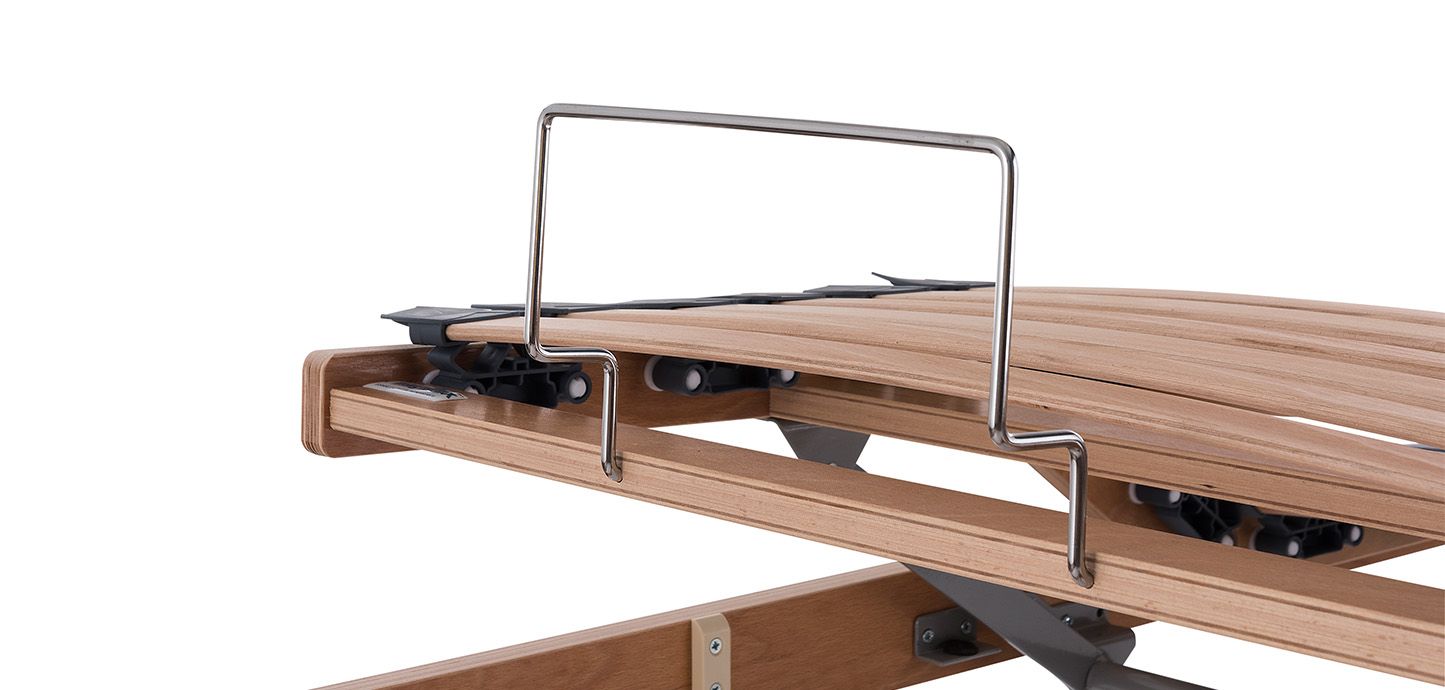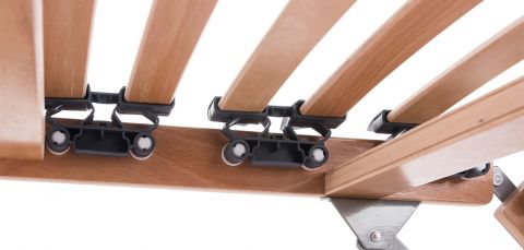 La rete è composta da 26 doghe in legno di faggio, dotate di ammortizzatori in caucciù e regolatori di rigidità che donano un sostegno personalizzabile a tutto il corpo, per un comfort perfetto che dura tutta la notte.