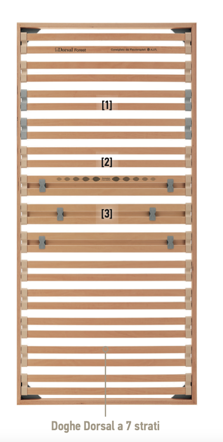 Supporto anatomico in faggio multistrato 60*30 mm certificato FSC e doghe in faggio multistrato 38*8 mm.