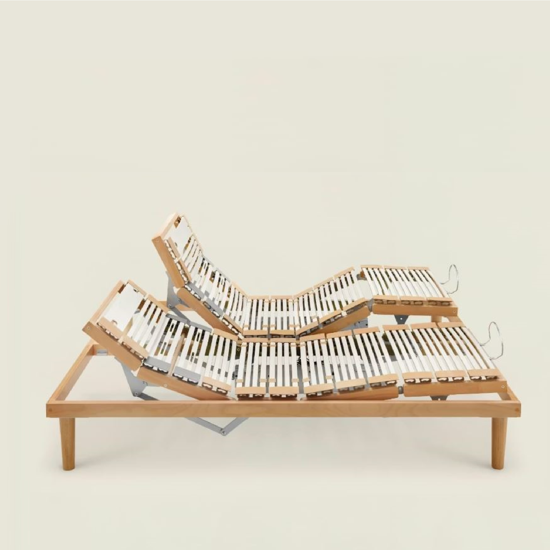 Rete letto in legno con doghe flessibili e movimento a 2 motori.