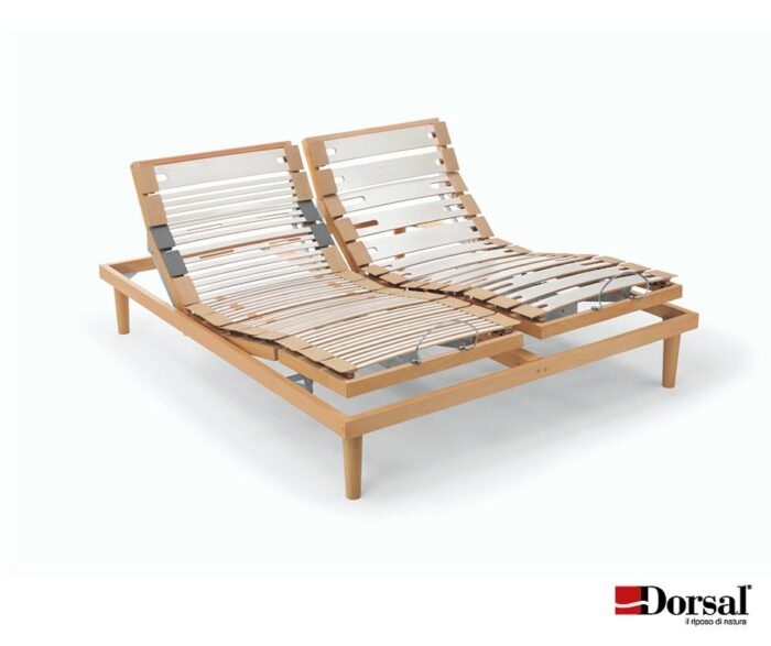 La versione matrimoniale prevede un piede di rinforzo di serie. Il meccanismo di movimento a 2 motori consente di regolare, stando comodamente distesi, l’inclinazione di testata e pediera per personalizzare al massimo la posizione di riposo. I movimenti delle due parti del letto sono separati e gestiti in autonomia tramite due telecomandi con filo, si consiglia pertanto di abbinare due materassi singoli.