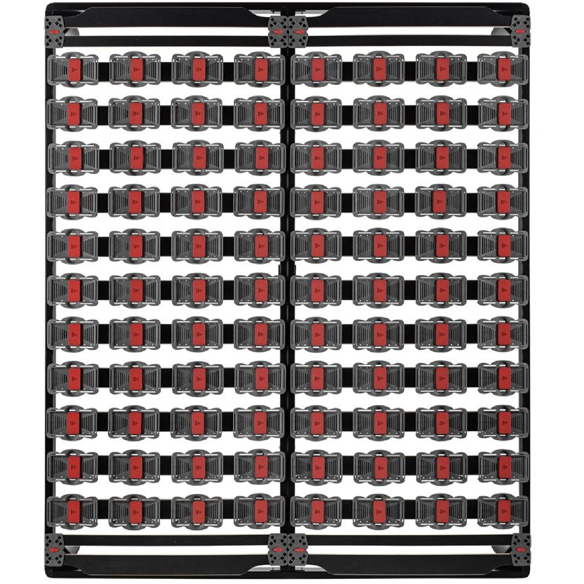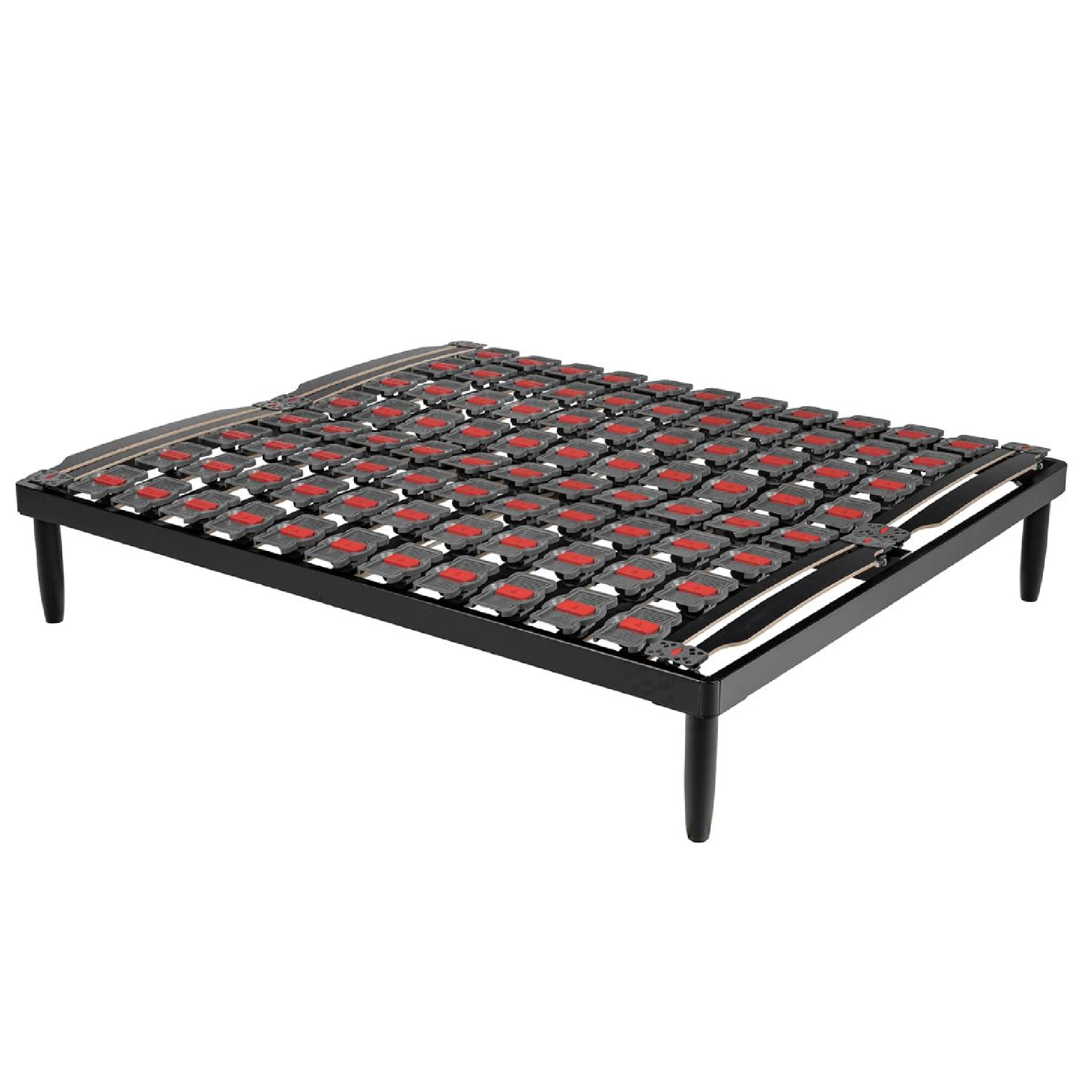 Il supporto è composto da listelli in faggio tinto nero e sospensioni con regolatori di rigidità: ciò garantisce la massima accoglienza e flessibilità.