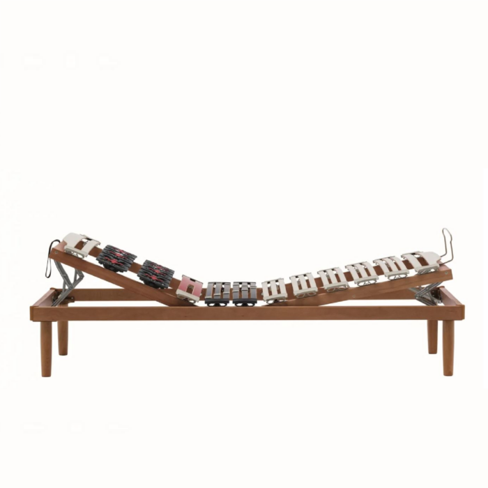 Nella versione matrimoniale le alzate sono separate, quindi ognuno può regolare a proprio piacimento la sua parte di letto, è pertanto consigliato abbinare due materassi singoli.