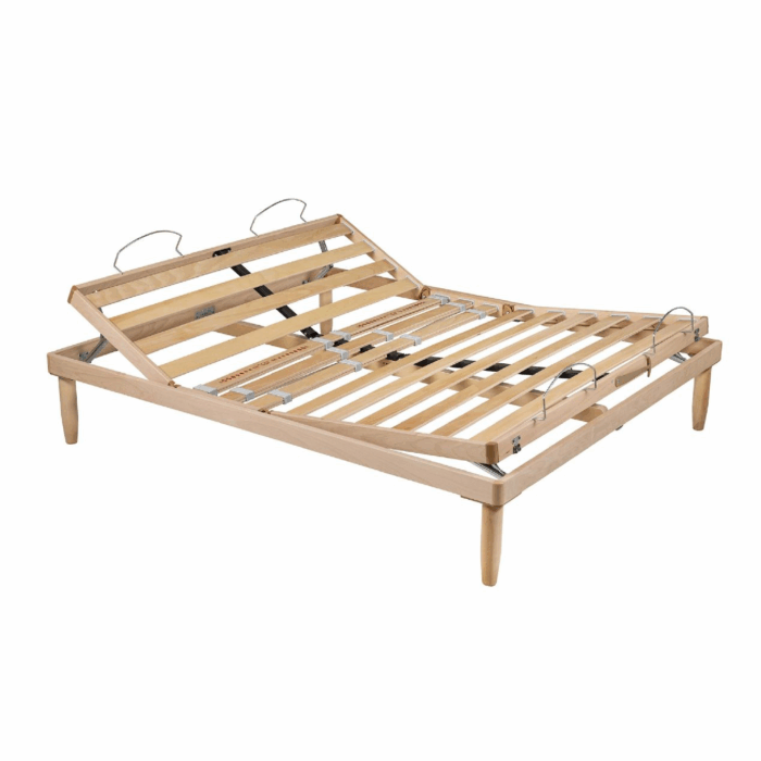 Telaio in legno multistrato di faggio da 70*25 mm, privo di sostanze nocive, con doppia struttura per garantire il movimento manuale alzatesta-piedi.
