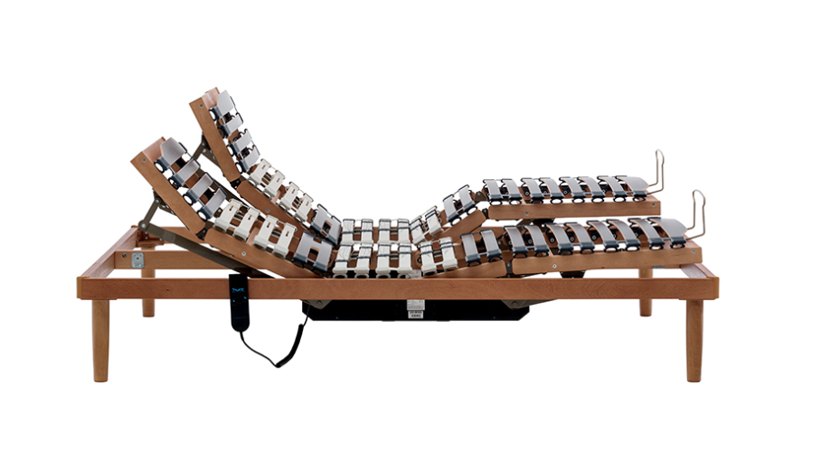 Doga stretta inserita in supporti in SEBS, elastomero termoplastico molto resistente, che risulta indistruttibile. La zona testa e piedi con doga sagomata terminale che sorregge il materasso fino all’estremo bordo, zona spalle con doghe ad ala di gabbiano per una corretta postura anatomica, zona lombare con doga più spessa che offra un sostegno deciso alla zona lordosi e zona del bacino con doghe anatomiche con regolatori di rigidità; zona gambe con doghe a portanza neutra. Il giunto in SEBS in cui sono inserite le doghe asseconda la naturale postura della colonna vertebrale nelle posizioni assunte durante il riposo.