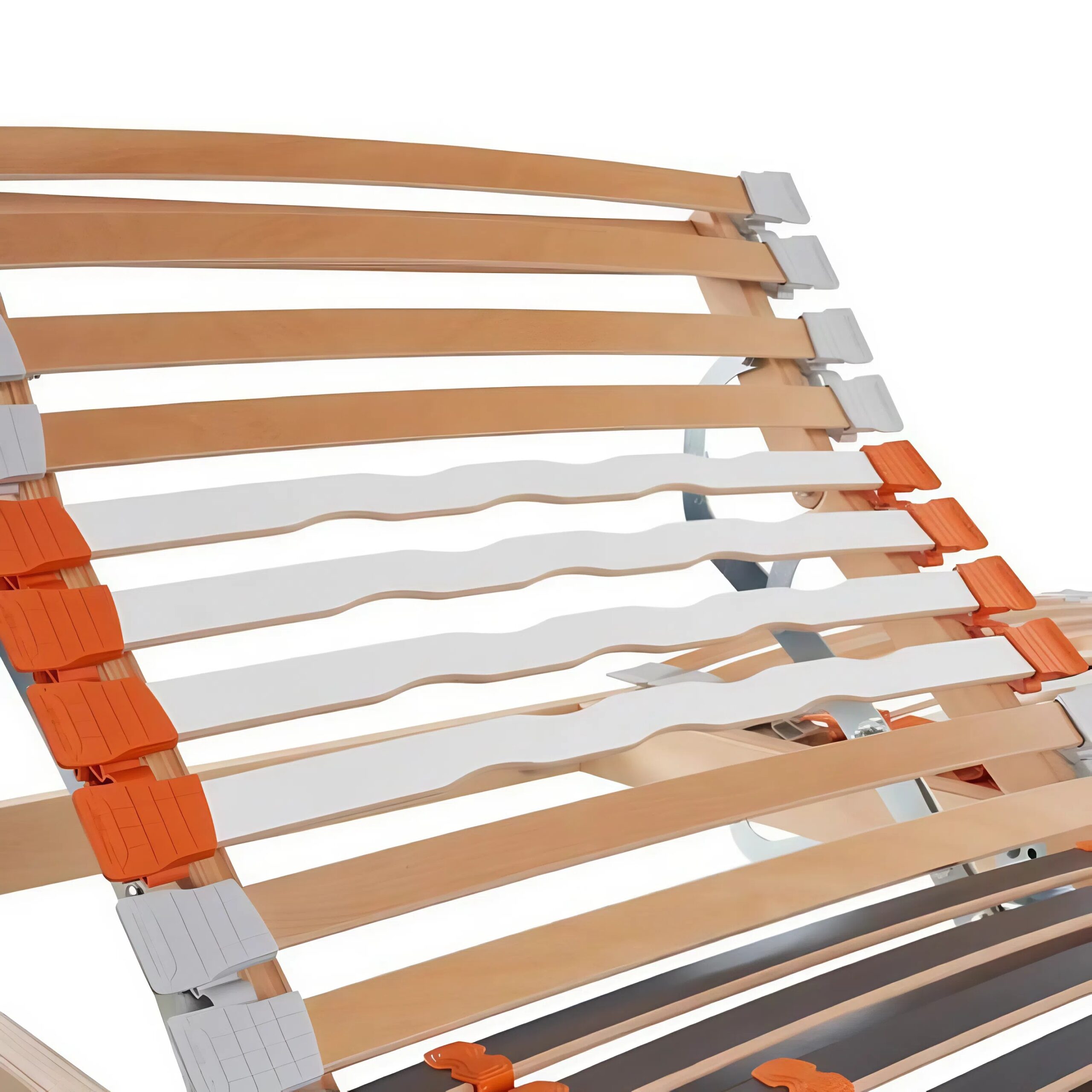 Il meccanismo di movimento motorizzato consente di regolare indipendentemente l’inclinazione della zona testa/spalle e gambe per personalizzare al massimo la posizione di riposo. Il telecomando a radiofrequenza fornito di serie permette di comandare i movimenti delle reti motorizzate con la massima facilità grazie all’assenza del filo o di un ingombrante ricevitore esterno.