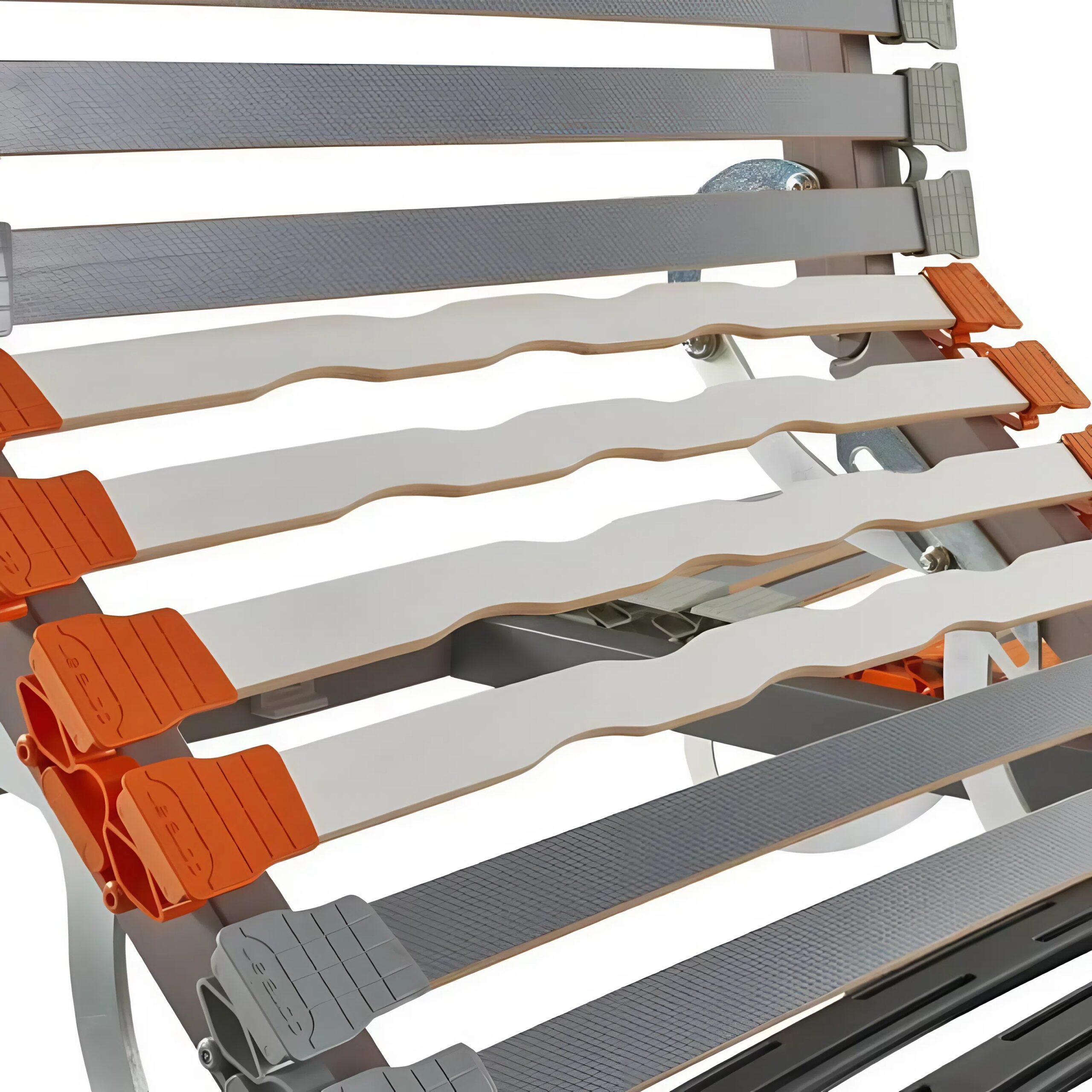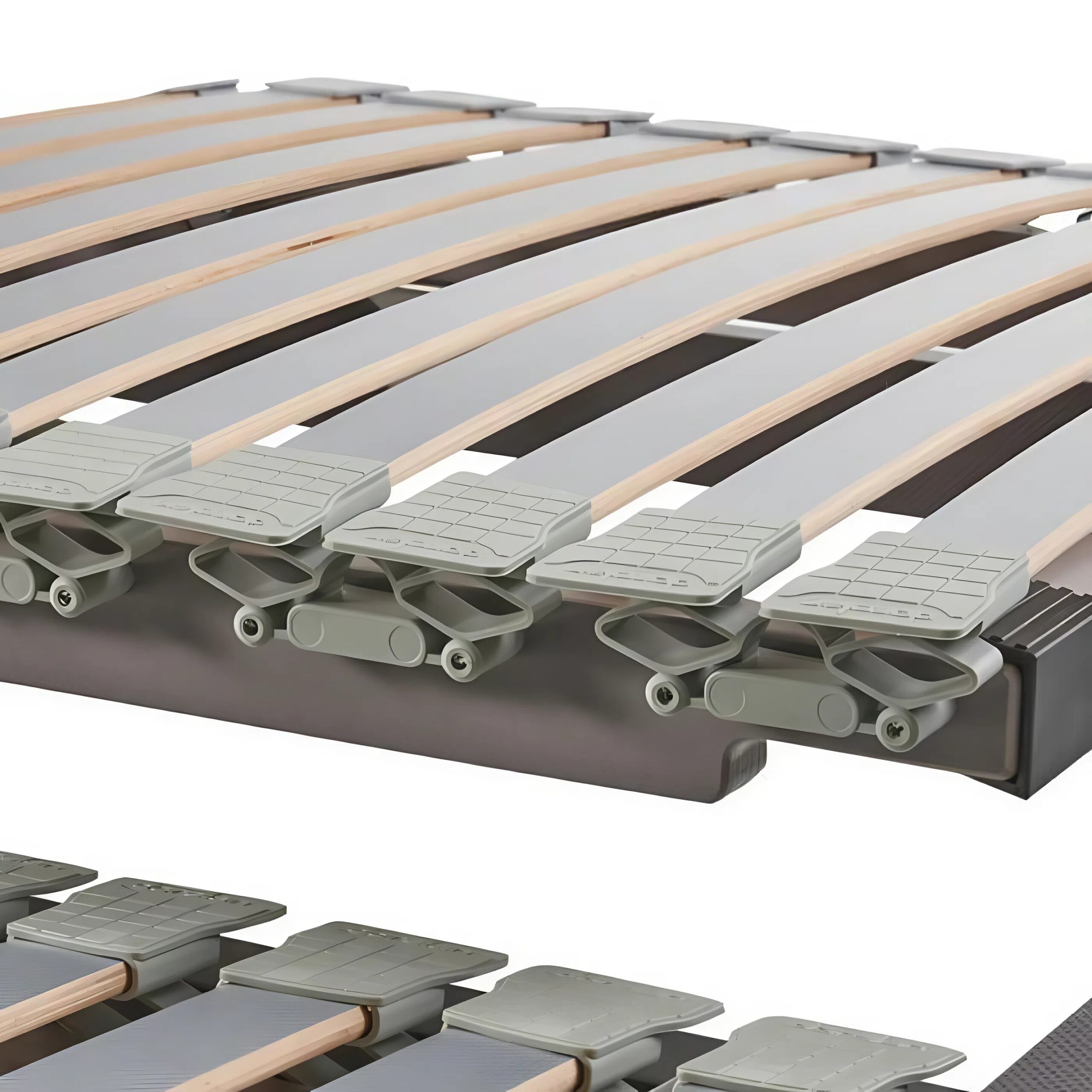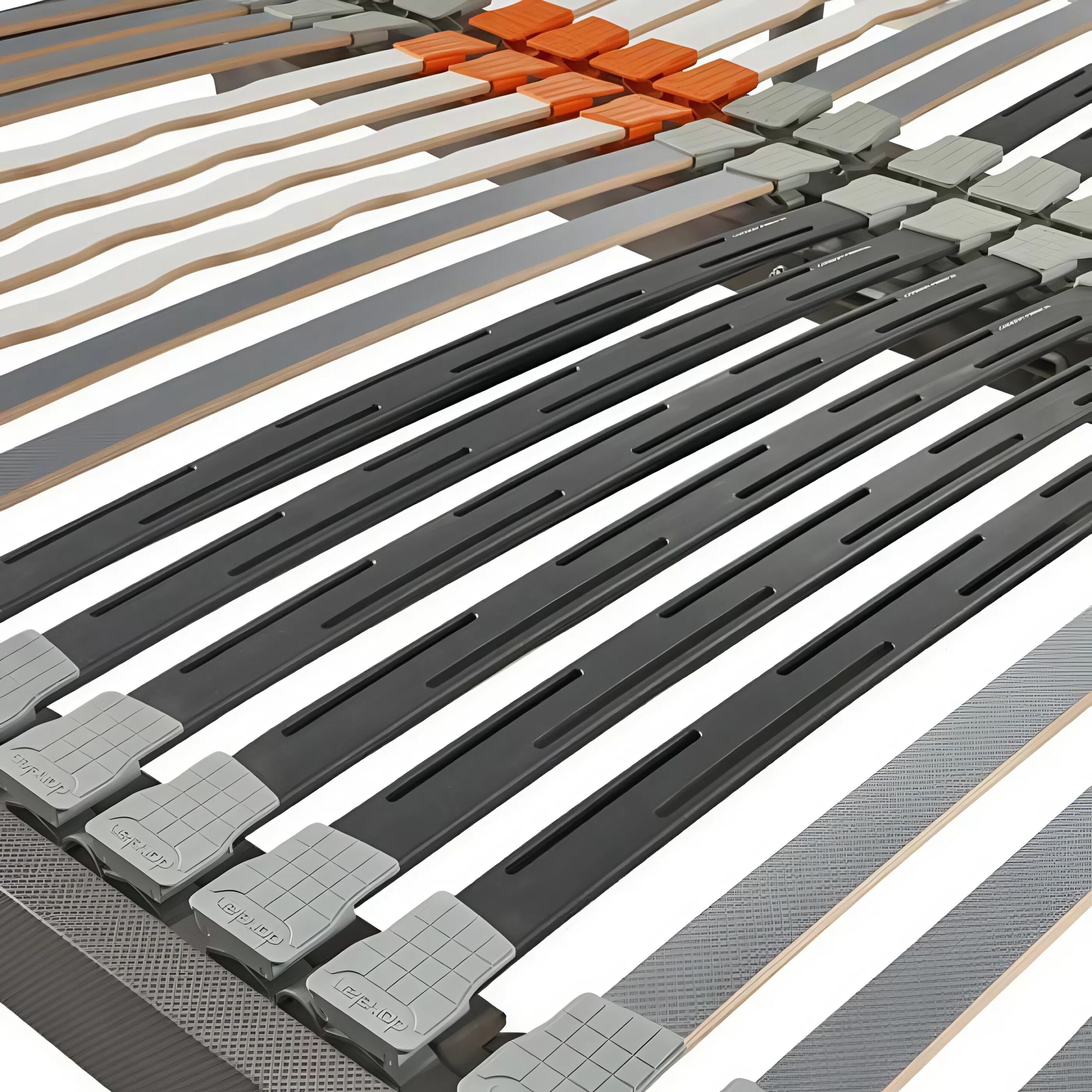 Il piano è composto da 28 doghe in faggio multistrato (con riferimento alla versione singola), inserite su innesti a balancella e fresate nella zona delle spalle per una maggiore flessibilità, e per garantire un maggior comfort a tutte quelle persone che dormono sul fianco. Nella zona lombare dei particolari cursori regolabili, consentono di personalizzare il sostegno e la risposta alle sollecitazioni del peso.