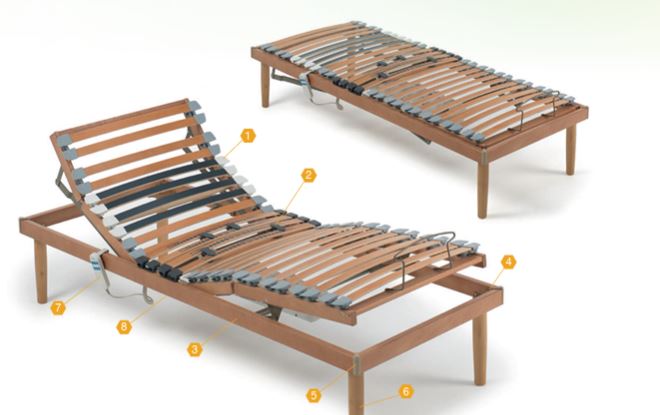 2. Regolatori di rigidità: le doghe sono provviste di regolatori che permettono di variare la rigidità dell’aria lombare, ottenendo un sostegno personalizzato in base al peso e posizione di riposo. Facendoli scorrere verso l’esterno si otterrà un piano letto più rigido. Facendolo scorrere verso il centro si avrà un piano letto più morbido.