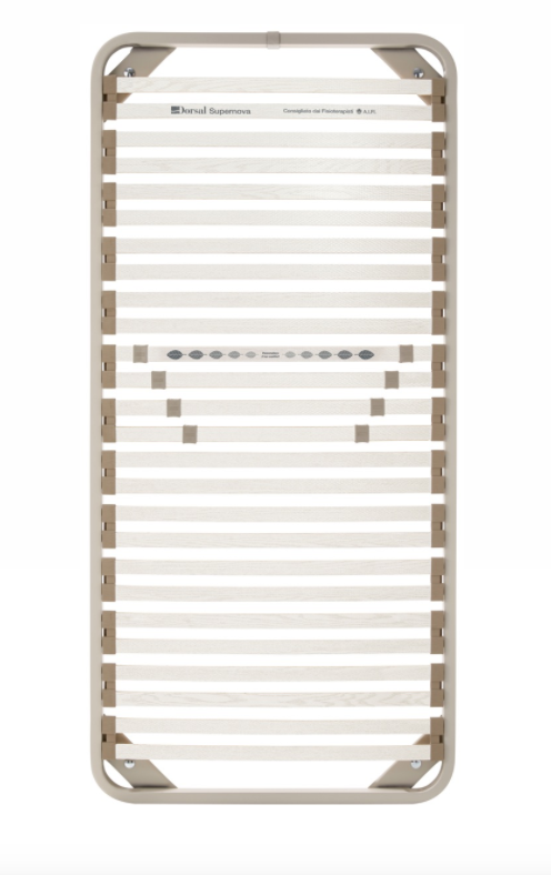 SuperNova coniuga la robustezza del telaio in acciaio all’adattabilità del doppio molleggio. E’ un supporto omogeneo e anatomico al tempo stesso e adatto a qualsiasi tipo di materasso.