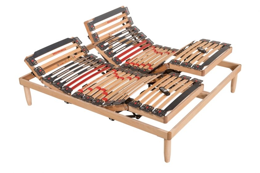 Il meccanismo di movimento motorizzato consente di regolare, con il pratico telecomando, l’inclinazione di testiera/zona spalle e pediera/zona gambe restando comodamente distesi sul proprio letto.