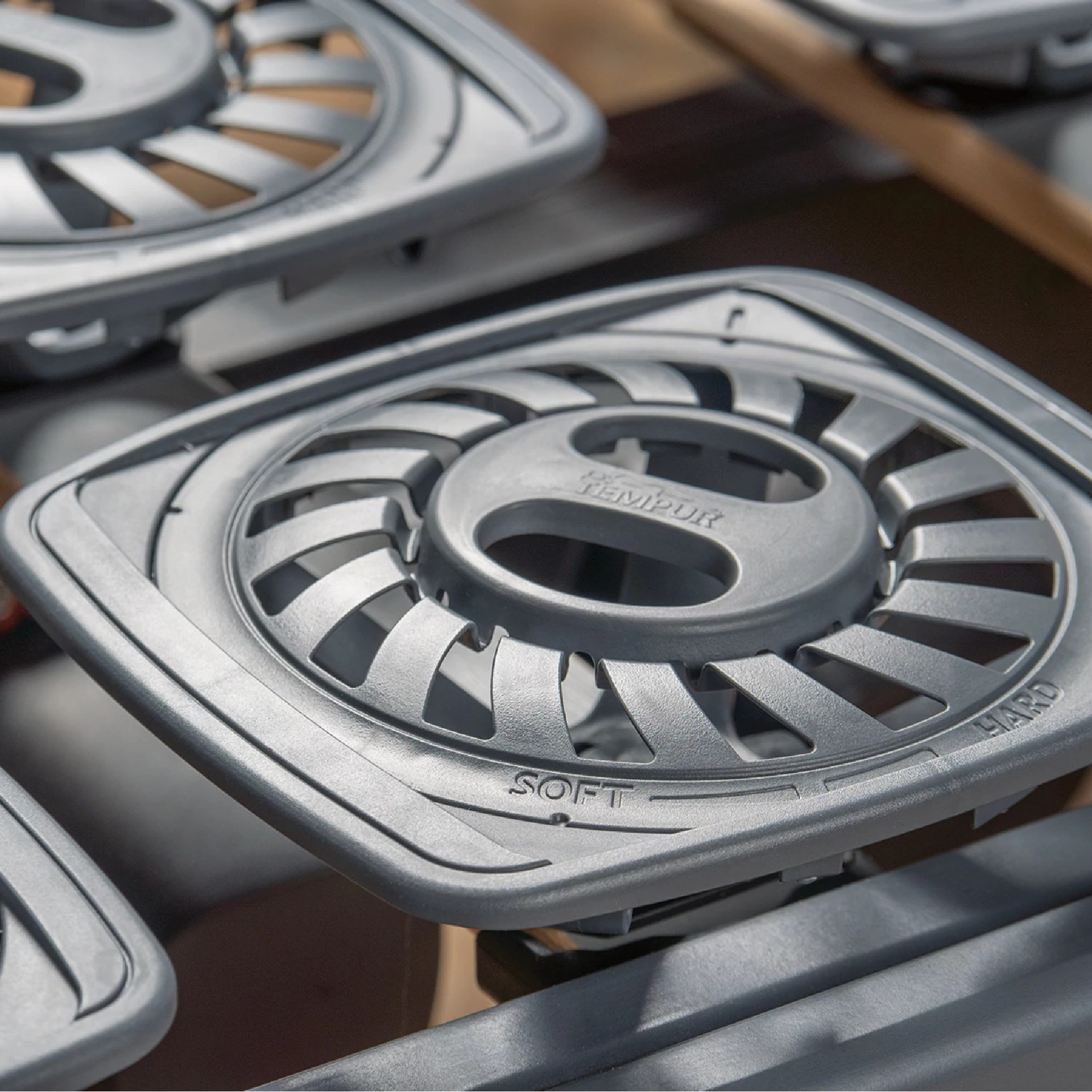 Il sistema rete Tempur Premium Flex si adatta alle tendenze e alle richieste attuali grazie a elementi piatti altamente flessibili con possibilità di abbassamento della zona delle spalle e schiena fche riescono a soddisfare con facilità le esigenze più diverse.