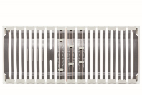 Doga stretta inserita in supporti in SEBS e TPEE, flessibili e robusti, consentono di ottenere diverse prestazioni dei vari elementi, che basculando ammortizzano i movimenti così da assecondare in modo naturale le forme del corpo. SEBS è un elastomero termoplastico molto resistente, che risulta indistruttibile; TPEE è un elastomero termoplastico dalle eccellenti qualità di resistenza al taglio e alla compressione. La sospensione si caratterizza per l’ampia escursione del mollegigo adatto ad accogliere la forma ad S della colonna vertebrale. Il portadoghe in SEBS, morbido e antiscivolo, garantisce che il materasso non si sposti; Il molleggio in TPEE ha eccellenti doti elastiche ad ampia escursione. Presenta inoltre un inserto irrigiditore di serie su 4 coppie di portadoghe. La zona del bacino presenta regolatori di rigidità che consentono di aumentare la flessibilità delle doghe posizionate nella zona del bacino via via che vengono spostati verso l’esterno (viceversa, aumentano la rigidità, via via che si spostano all’interno).