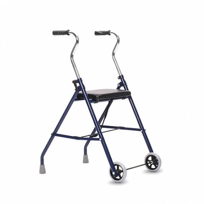 Deambulatore rollatore con due ruote fisse anteriori e due puntali posteriori