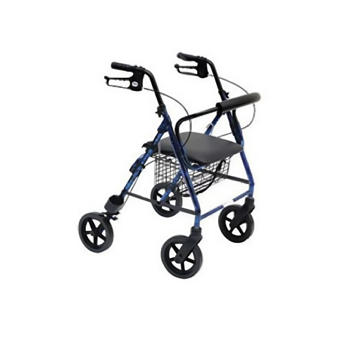 Rollator in alluminio verniciato, particolarmente indicato per l’uso in ambienti esterni.