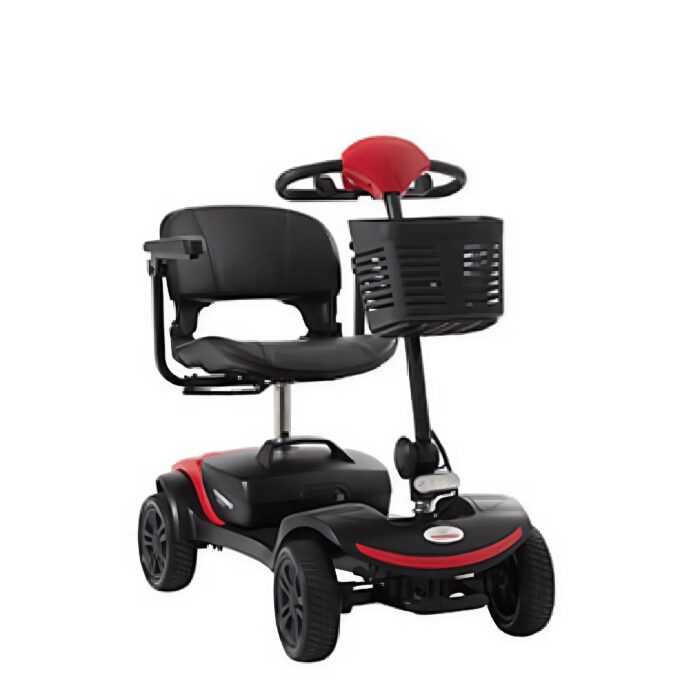 Scooter elettrico dalle dimensioni ridotte, estremamente maneggevole anche in spazi chiusi.