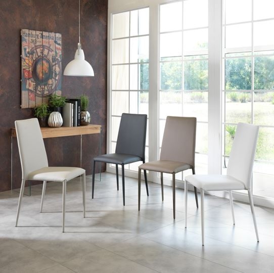 Sedia con struttura in metallo, rivestita in Ecopelle.