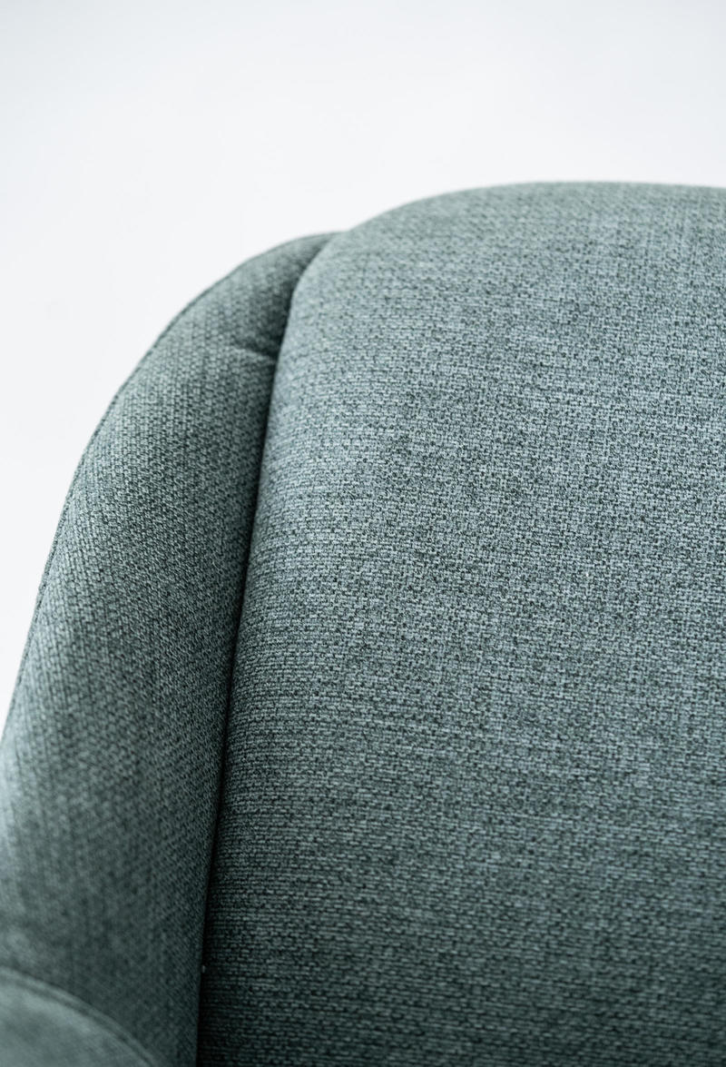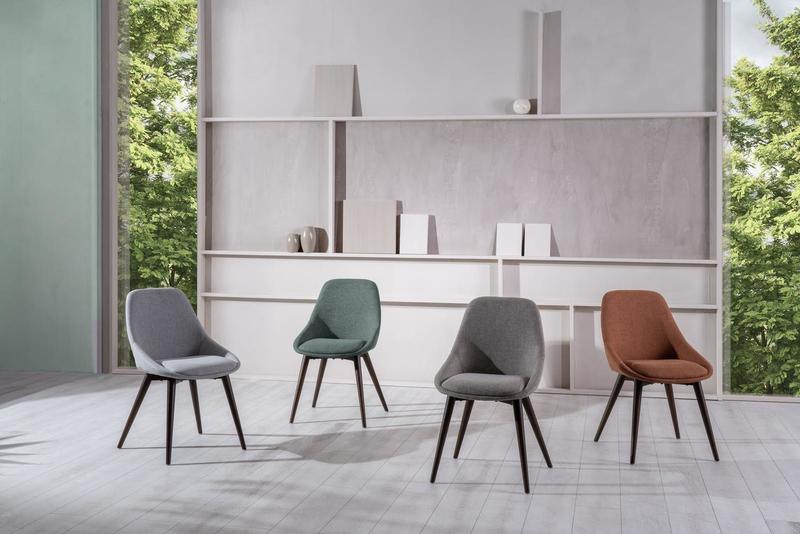 Rivestita in tessuto color grigio chiaro, verde, marrone chiaro o ruggine dona alla zona giorno un tocco di colore e si abbina armoniosamente ai tavoli in stile contemporaneo e moderno.