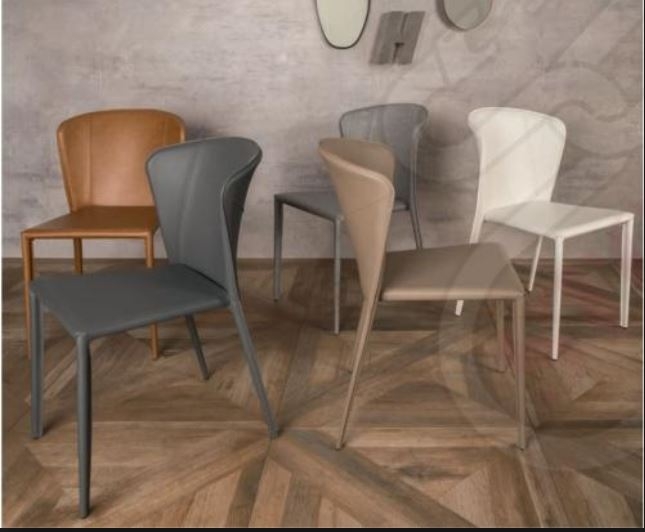 Una sedia in grado di animare gli spazi con la sua sofisticata e attuale eleganza delle linee e il sapore vintage della similpelle con cuciture a vista. Sedie da zona living, il comfort è evidente.