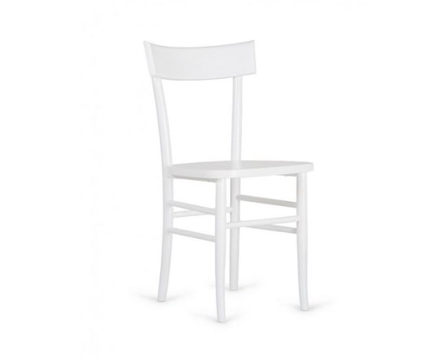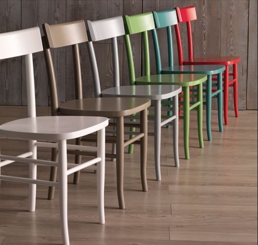 Sedia con seduta in MDF laccato, schienale in legno e gambe in legno di faggio laccato.