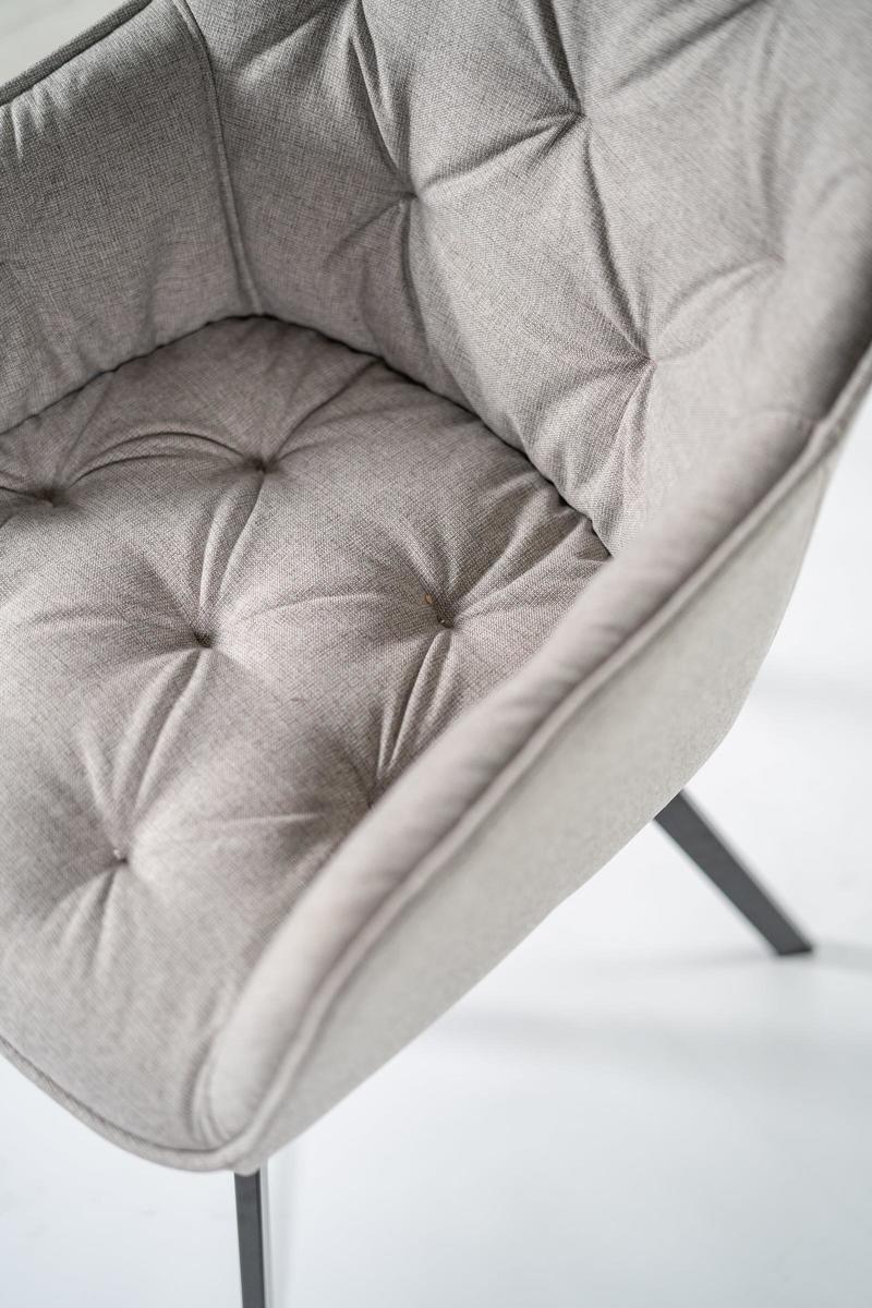 • Seduta, schienale e braccioli imbottiti e rivestiti in tessuto.