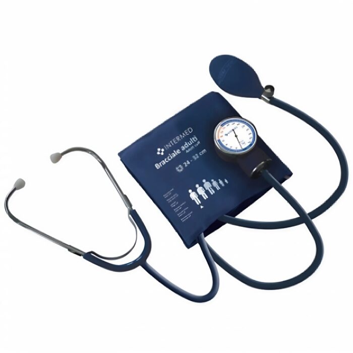 - Manometro, monopalla, bracciale, fonendoscopio e astuccio di colore blu.