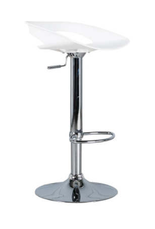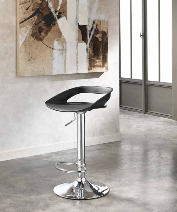Sgabello alzabile con base cromata e seduta in PVC.