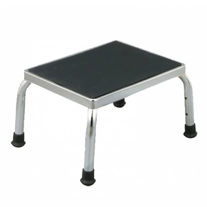 Poggiapiedi con superficie di appoggio in gomma rigata e puntali antiscivolo.