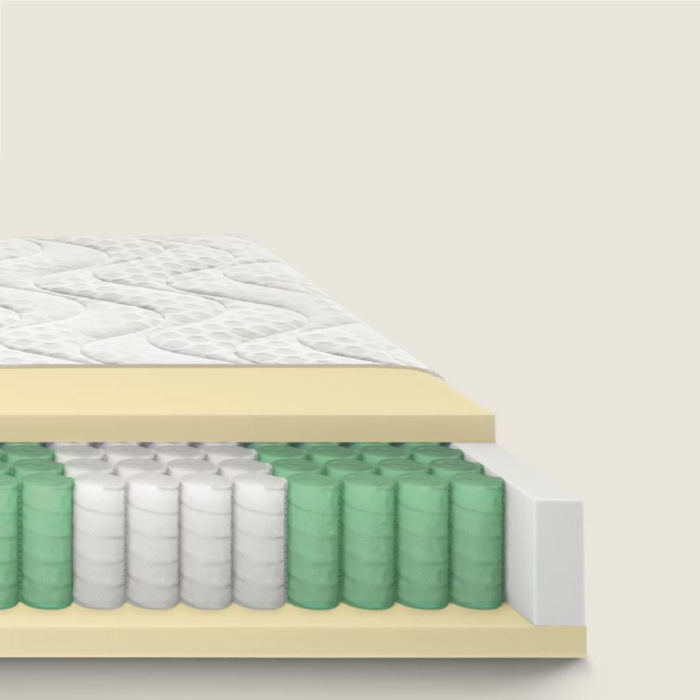 Le sospensioni a molla forniscono un sostegno delicato ma molto efficace, pensato punto per punto per una grande adattabilità. La loro forma le rende sensibili e adattive, non si sovrappongono e rimangono indipendenti, regalando un sonno senza rumori. Ogni molla è rivestita in tessuto e ad ogni movimento equilibra il clima del materasso.