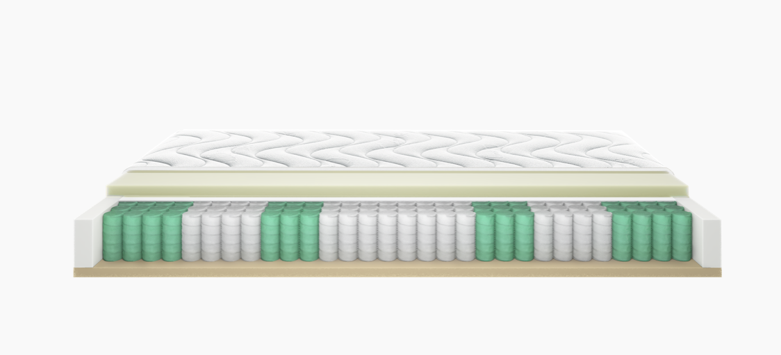 Il lato di contatto è realizzato in Natur Memory, allevia e riduce le tensioni muscolari per un riposo rilassante. Le elevate densità dei materiali rendono questo materasso estremamente affidabile e duraturo, per prestazioni di alto livello e per forme che si mantengono inalterate nel tempo. La struttura è realizzata con il sistema Box Spring con bordi antiabbassamento. Il concetto di riposo a 7 zone è garantito dal diverso molleggio delle molle a seconda del segmento di corpo che devono sostenere.