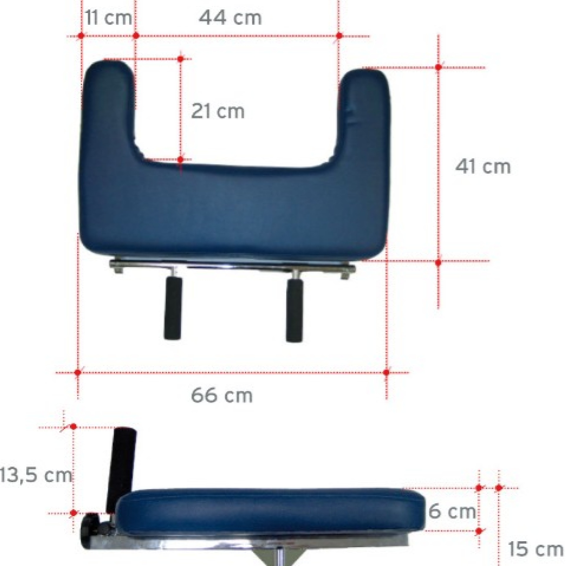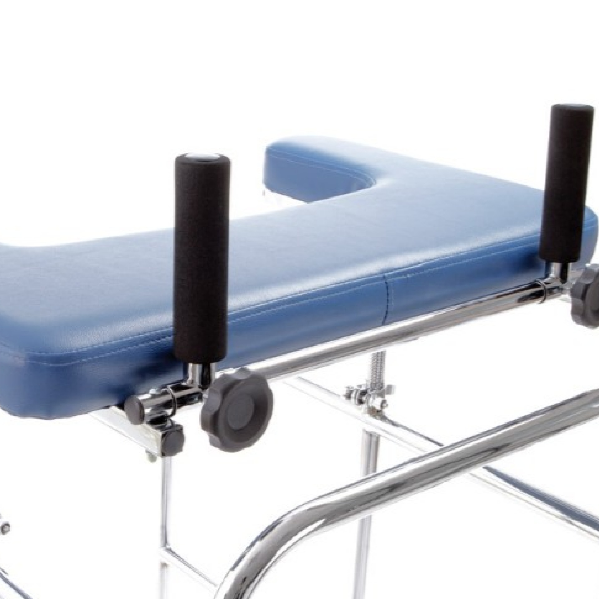 Tavolino imbottito per deambulatori sottoascellari/antibrachiali. Dotato di due manopole antibrachiali anteriori.
