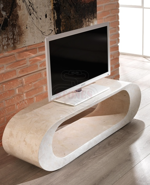 Tavolino Porta Tv Stones, realizzato in pietra fossile.