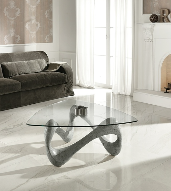 Tavolino da salotto con top in vetro 10 mm filo lucido.
