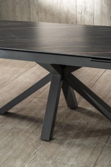 Tavolo Ceramica Uno Stones allungabile con base in metallo verniciato e top in ceramica.