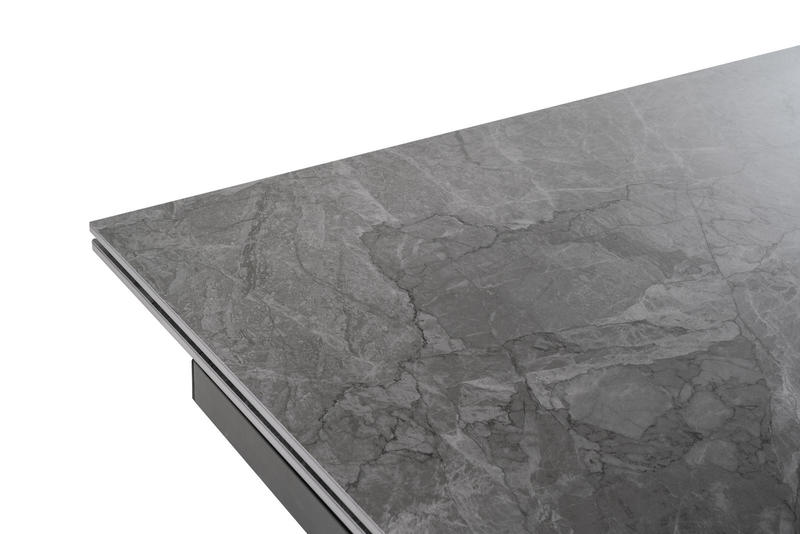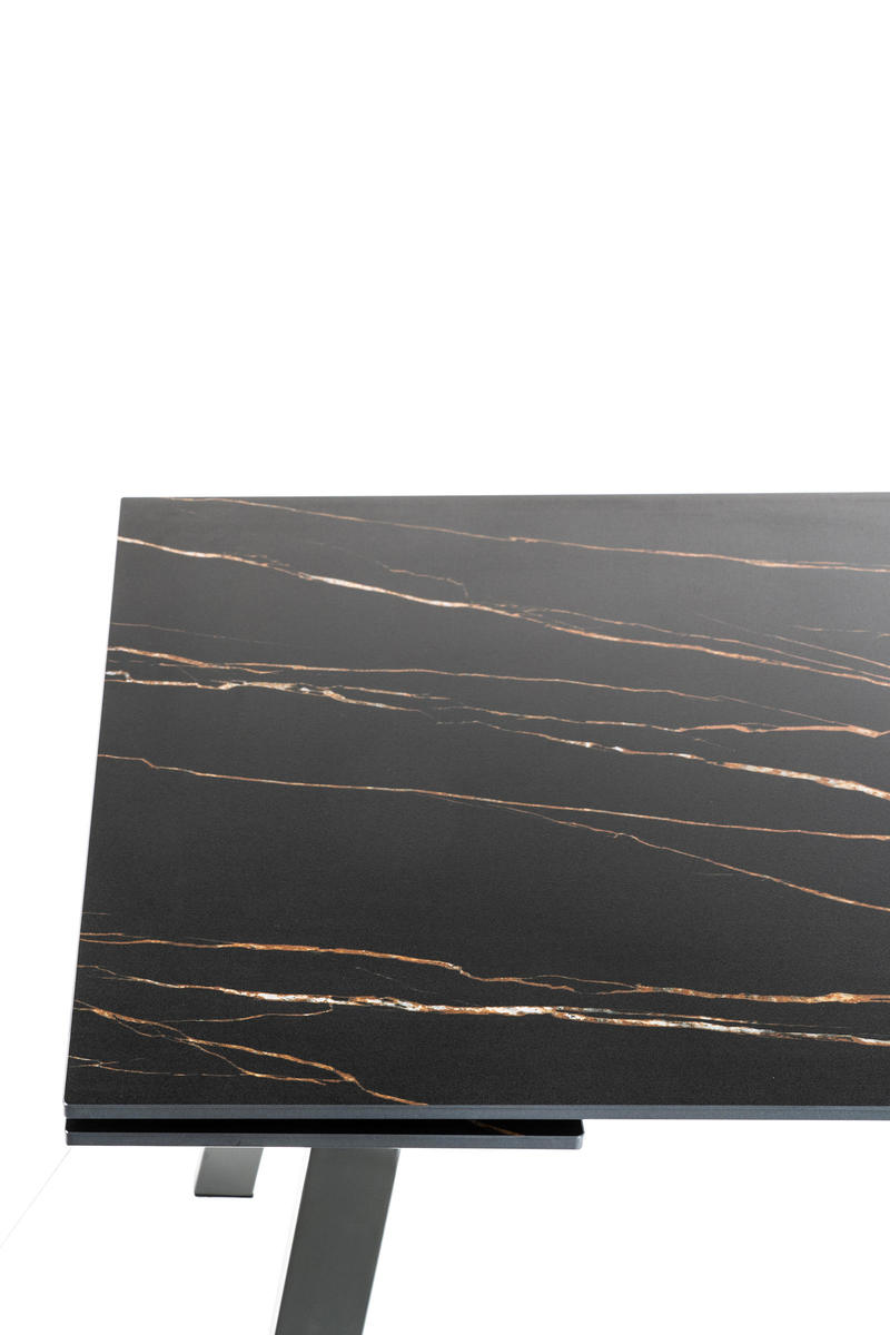 Tavolo Dylan allungabile con base in metallo verniciato e top in ceramica.