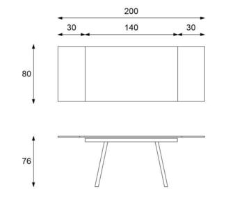 Dimensioni: Lunghezza 140/200 x Larghezza 80 x Altezza 76 cm.