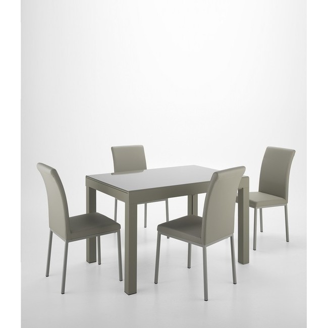 Tavolo Executive Stones allungabile con base in metallo verniciato e top vetro temperato.